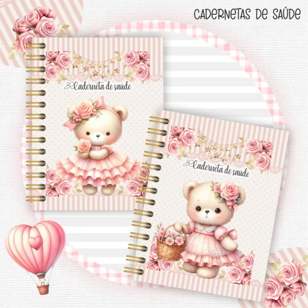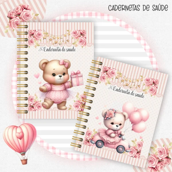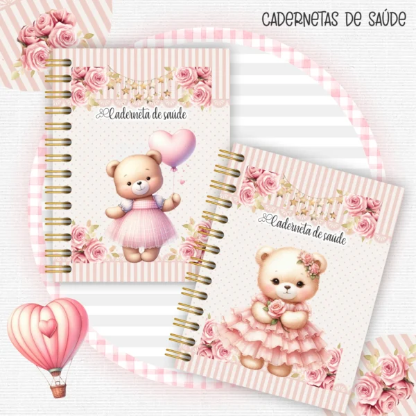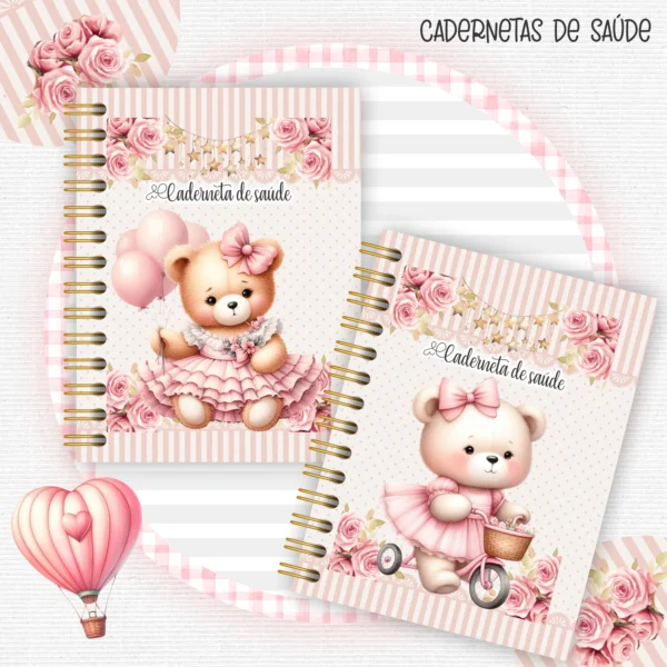 Este pacote digital completo é perfeito para criar produtos personalizados com o tema de ursinhos, disponível nas encantadoras versões azul e rosa. Ideal para álbuns de bebê, cadernetas de saúde e muito mais!