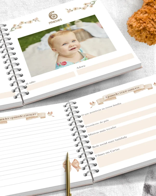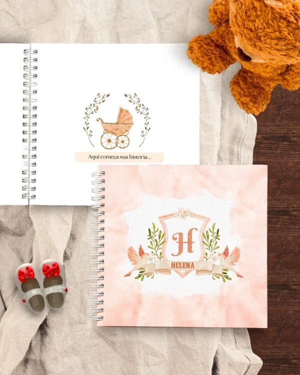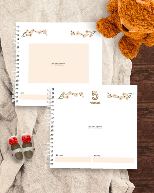 Este pacote encantador é perfeito para eternizar os momentos especiais do seu bebê, com um design delicado e floral. Ideal para criar memórias inesquecíveis e organizar todas as informações importantes.
