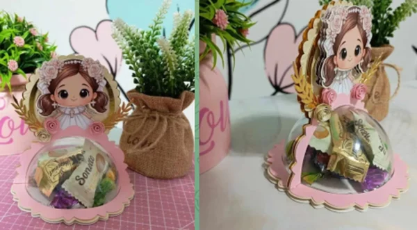 * 🍬 **Bolsinha Porta Bombom:** 2 modelos completos (PNG, PDF, STUDIO3, SVG, com e sem linhas de corte) e moldes (DXF, PNG, STUDIO3, SVG).