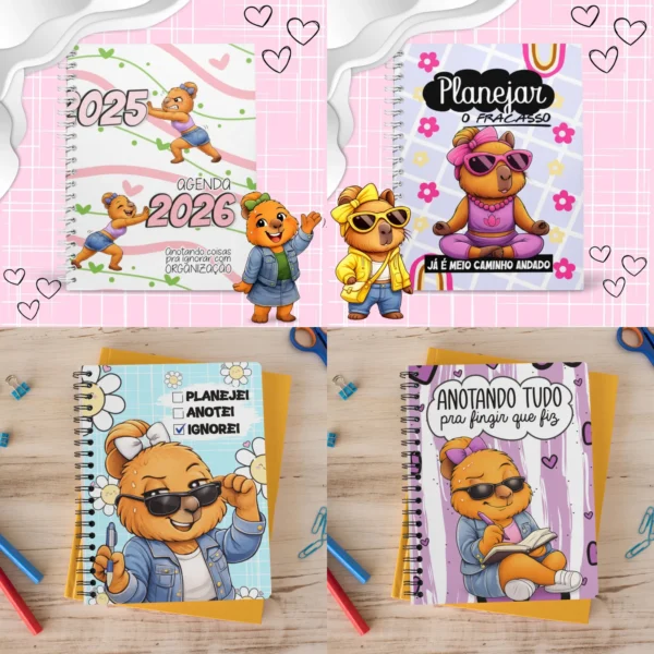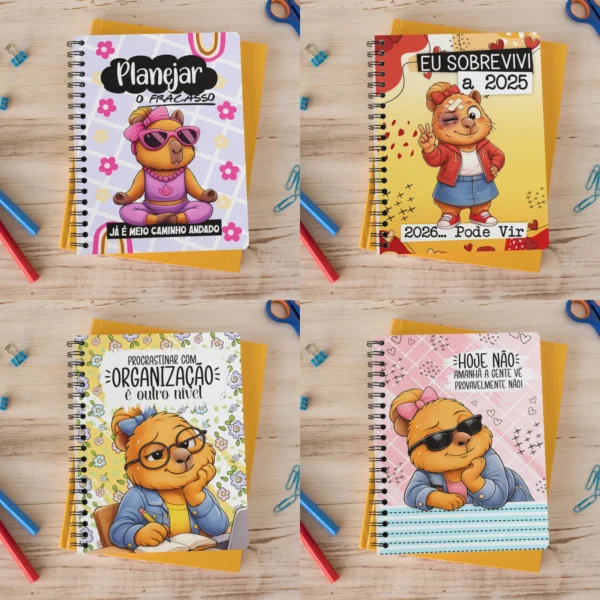 * 📚 **Bloquinhos A6 Encadernação:** 4 modelos completos, cada um com capa, contracapa (PNG) e arquivos em PDF, STUDIO3 e SVG.