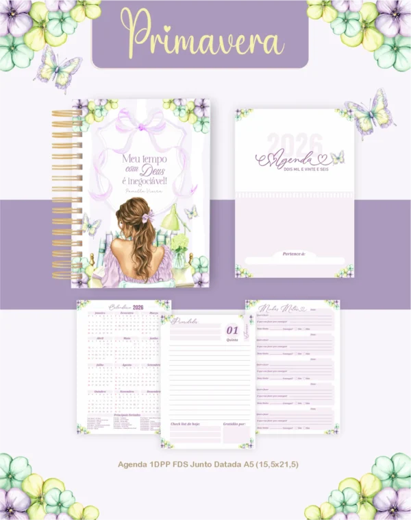 🎨 Capas: 6 arquivos (PDF, PNG).📂 **AGENDA 1DPP A5 DATADA FDS JUNTO (2026):** Uma página por dia para anotações detalhadas e planejamento completo.