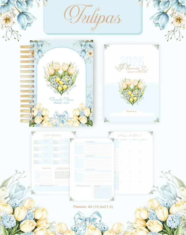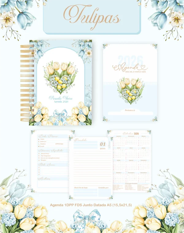 PROJETO AGENDA TULIPAS 01 – 2026 E PERMANENTEEste pacote digital exclusivo oferece uma coleção completa para criar produtos personalizados com o tema “Tulipas”, perfeito para 2026 e uso permanente. Inclui miolos de agendas e planners, capas, elementos gráficos, fontes e mockups para divulgar seus produtos.