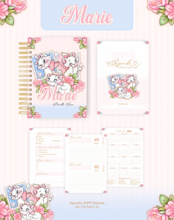 ✨ PROJETO AGENDA GATINHA MARIE 01 – 2026 E PERMANENTE ✨Este pacote digital completo contém todos os arquivos necessários para criar e personalizar produtos encantadores com o tema da Gatinha Marie, incluindo agendas datadas para 2026 e itens permanentes. Ideal para artesãos e empreendedores!