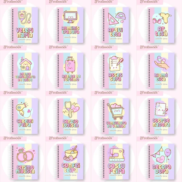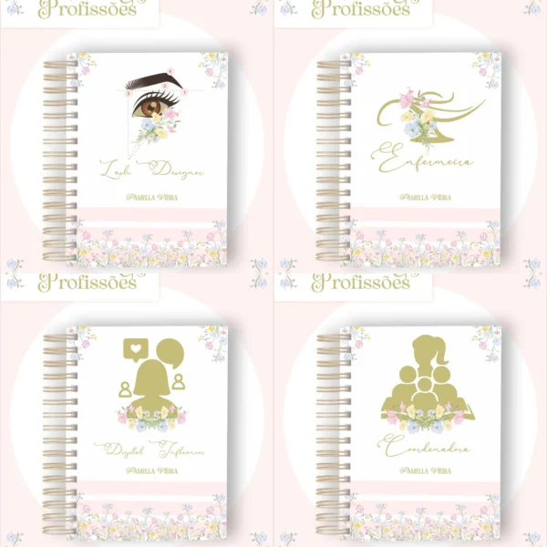 🖼️ Capas: 6 arquivos (PNG, PDF) para suas agendas datadas.Com este pacote, você terá tudo o que precisa para criar agendas, bloquinhos e canecas personalizadas, destacando diversas profissões com um design clean e moderno! 🚀