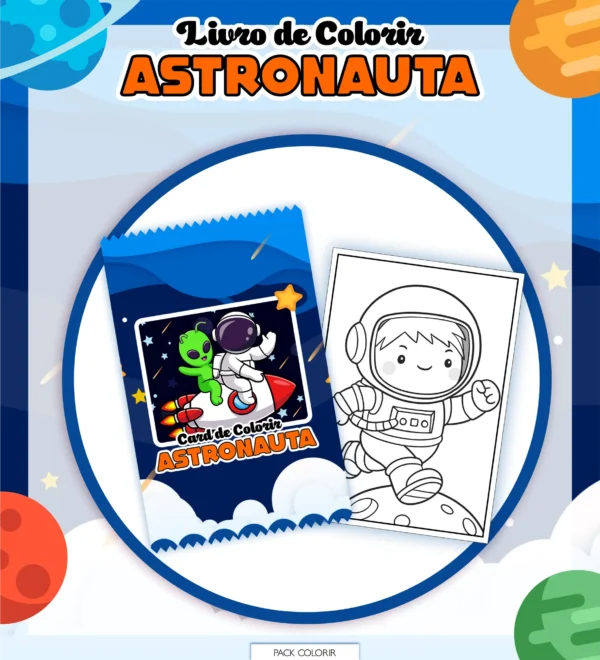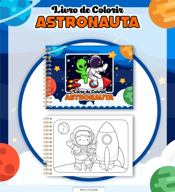 * 1 arquivo de miolo completo (PDF) com o tema astronauta.📂 **Capas e Contracapas:** 6 arquivos (PNG) e 1 arquivo (PDF) para você montar seu livro de colorir com diversas opções.