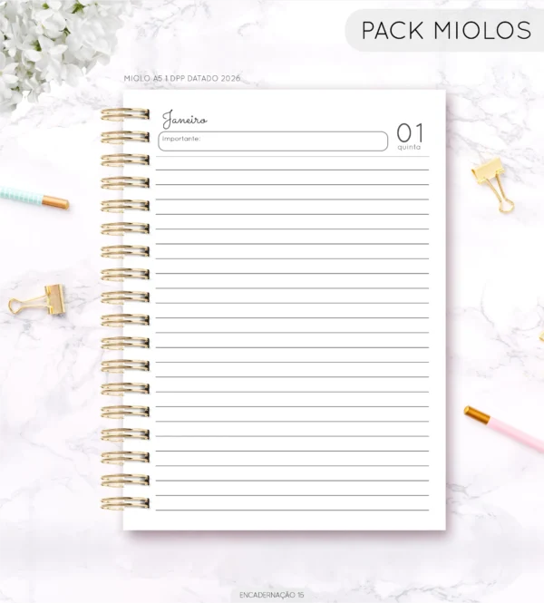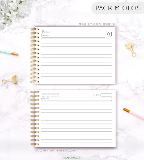 * Miolo 1DPP (1 Dia Por Página): 2 arquivos PDF (versões Datado 2026 e Permanente).