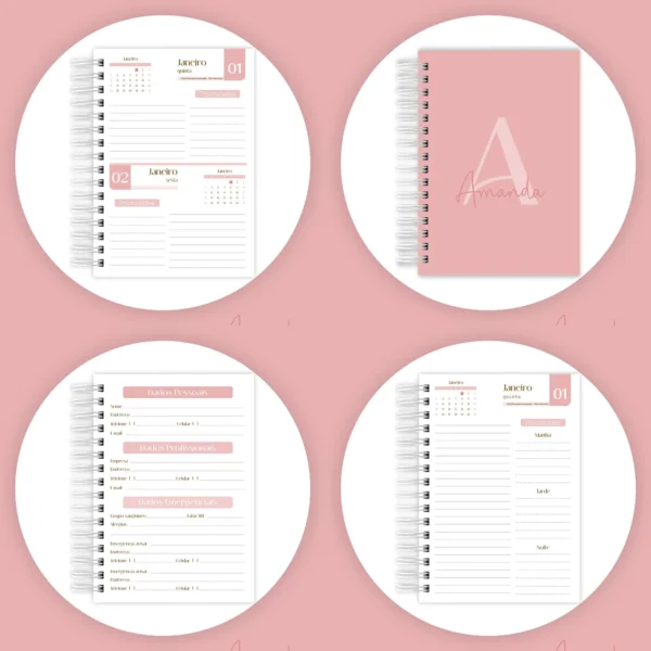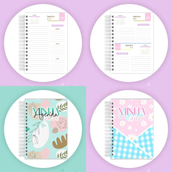 ➖ Agenda A5 – permanente – com calendário – sem divisória – sem hora – Candy