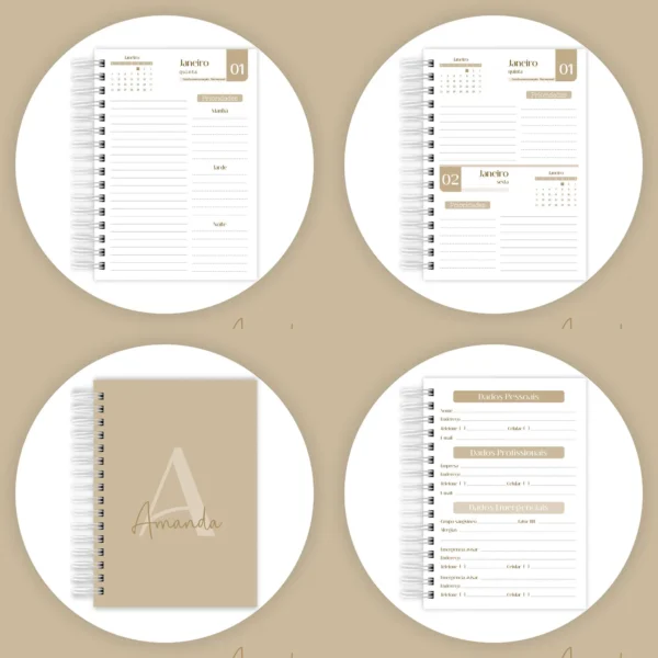 ➖ Agenda A5 – permanente – com calendário – sem divisória – sem hora – Bege