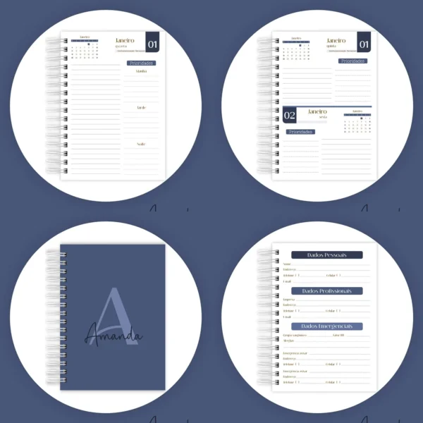 ➖ Agenda A5 – permanente – sem calendário – sem divisória – sem hora – Azul