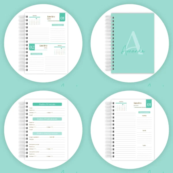 ➖ Agenda A5 – permanente – com calendário – sem divisória – sem hora – Verde Tiffany