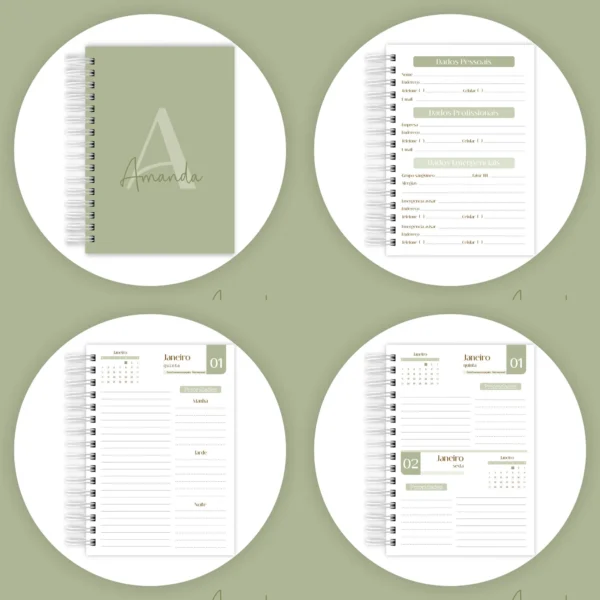 ➖ Agenda A5 – permanente – com calendário – sem divisória – sem hora – Verde