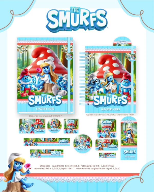 Este pacote digital exclusivo oferece uma vasta gama de recursos para personalizar seus cadernos, agendas e outros itens, tudo com o tema adorável dos Smurfs. Perfeito para papelaria personalizada, projetos escolares ou presentes únicos!