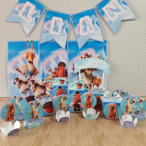 Com este kit, sua festa “A Era do Gelo” será um sucesso congelante! 🥳 Personalize cada detalhe e encante seus convidados com a magia de Manny, Sid, Diego e Scrat!