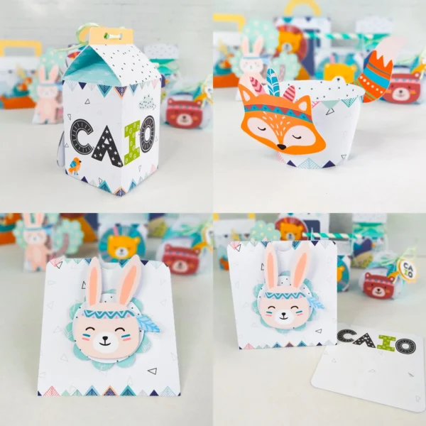 Este é o “PROJETO Arquivo Digital KIT FESTA – ANIMAIS BOHO 01”, um pacote completo e encantador para criar uma festa inesquecível com o tema de animais tribais e boho! 🐘🦊🐻✨