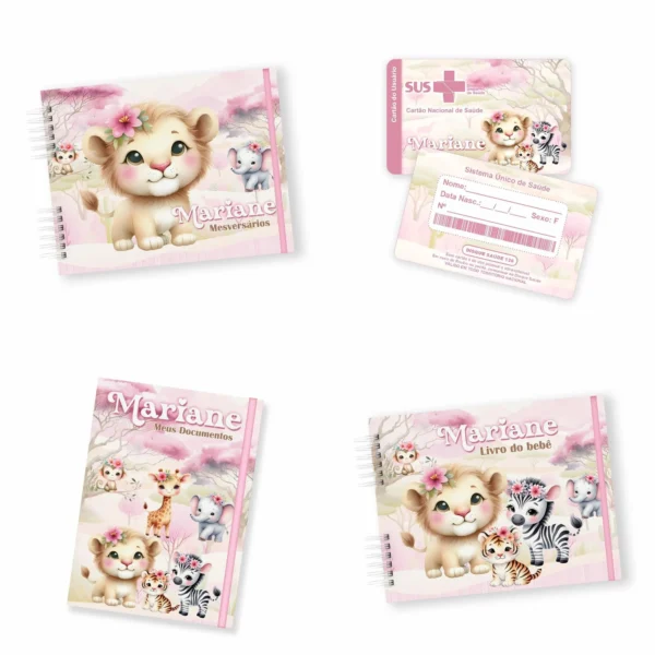 * **Documentos e Cadernetas:** Inclui 2 modelos de Cartão SUS, 1 Tag, 1 Marcador de Página, além de Capas e Contracapas para Caderneta (2 arquivos), Bloquinho (2 arquivos), Livro do Bebê (2 arquivos) e Documentos (2 arquivos). Totalizando 12 arquivos .PNG prontos para uso! 📄✨
