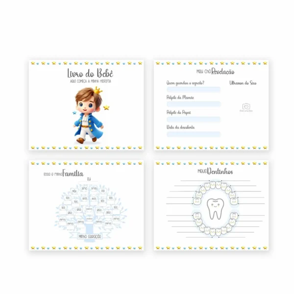 👑 Este pacote digital “Príncipe” é um kit completo e encantador para personalizar diversos itens, ideal para projetos de papelaria e presentes. Inclui: