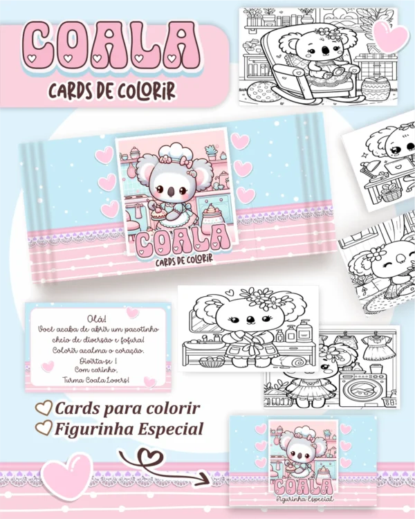 • Arquivo Digital CARDS DE COLORIR -  COALA KAWAII 01