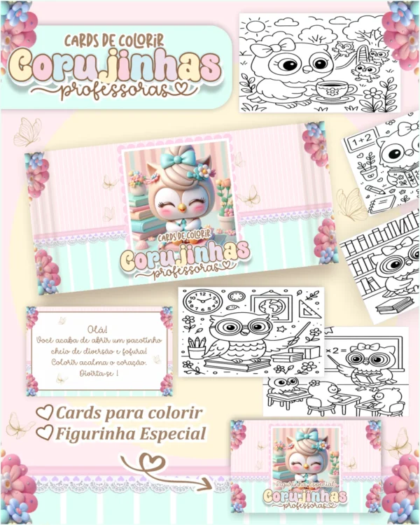 • Arquivo Digital CARDS DE COLORIR -  CORUJINHAS PROFESSORAS 01