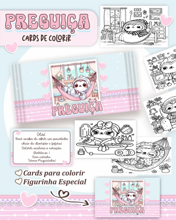 • Arquivo Digital CARDS DE COLORIR -  PREGUIÇA KAWAII 01