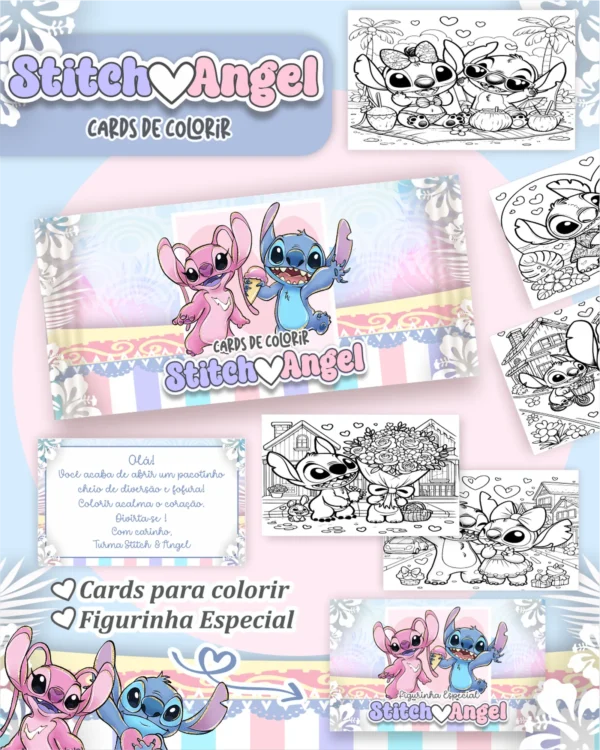 • Arquivo Digital CARDS DE COLORIR -  STITCH & ANGEL 01
