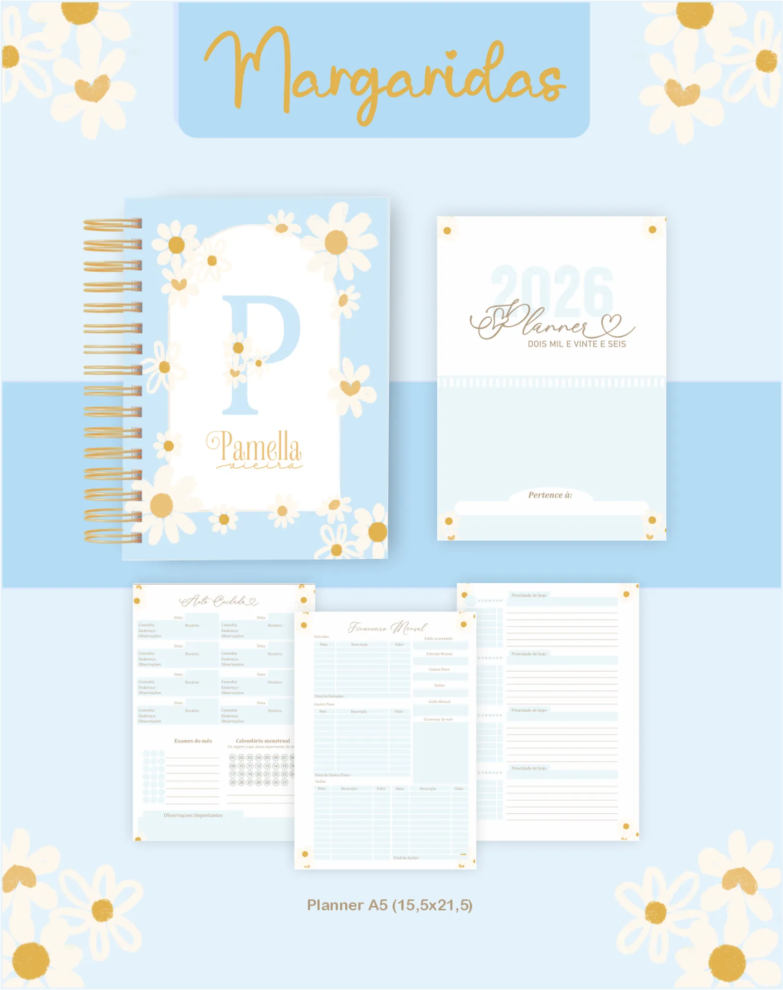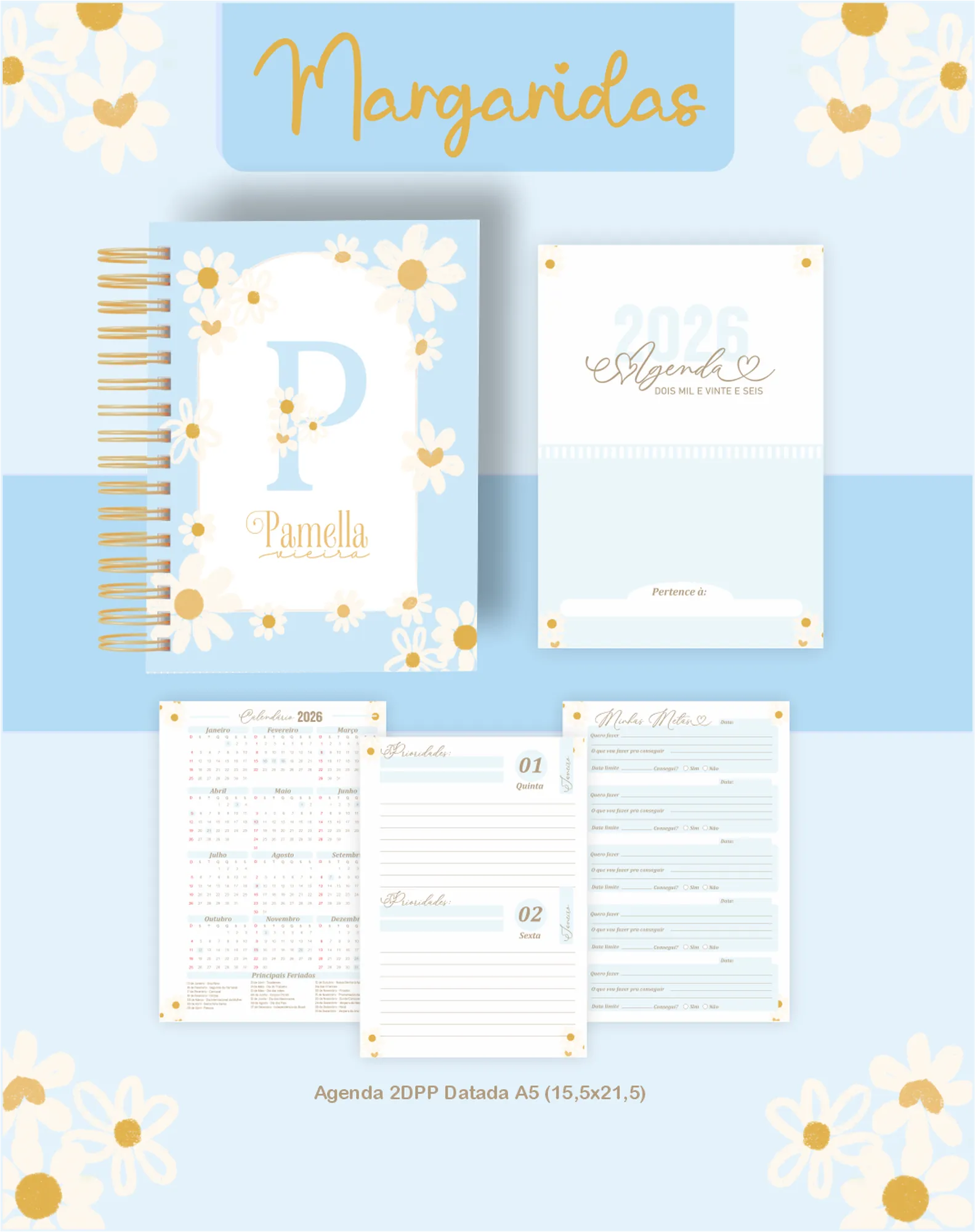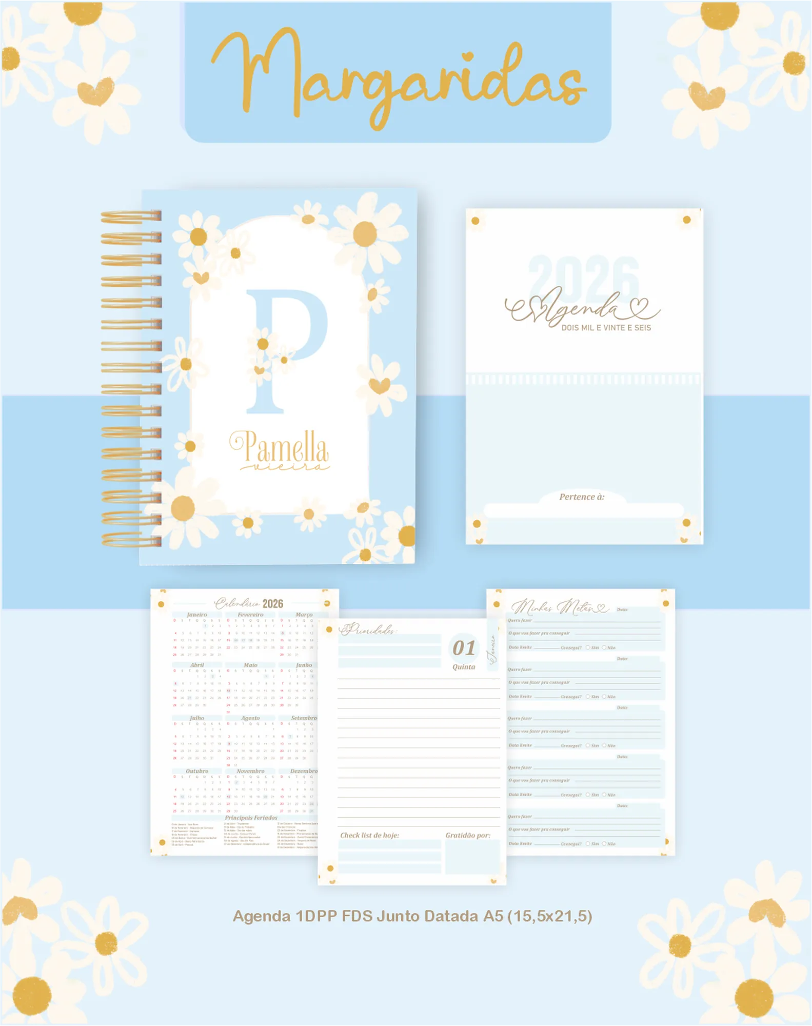✨ Apresentamos o **PROJETO AGENDA ALFABETO MARGARIDAS 01 – 2026 E PERMANENTE**! Um pacote digital completo e encantador, perfeito para organizar seu ano e seus projetos com um toque floral e funcionalidade. Prepare-se para criar produtos incríveis com este kit versátil! 🌸🗓️