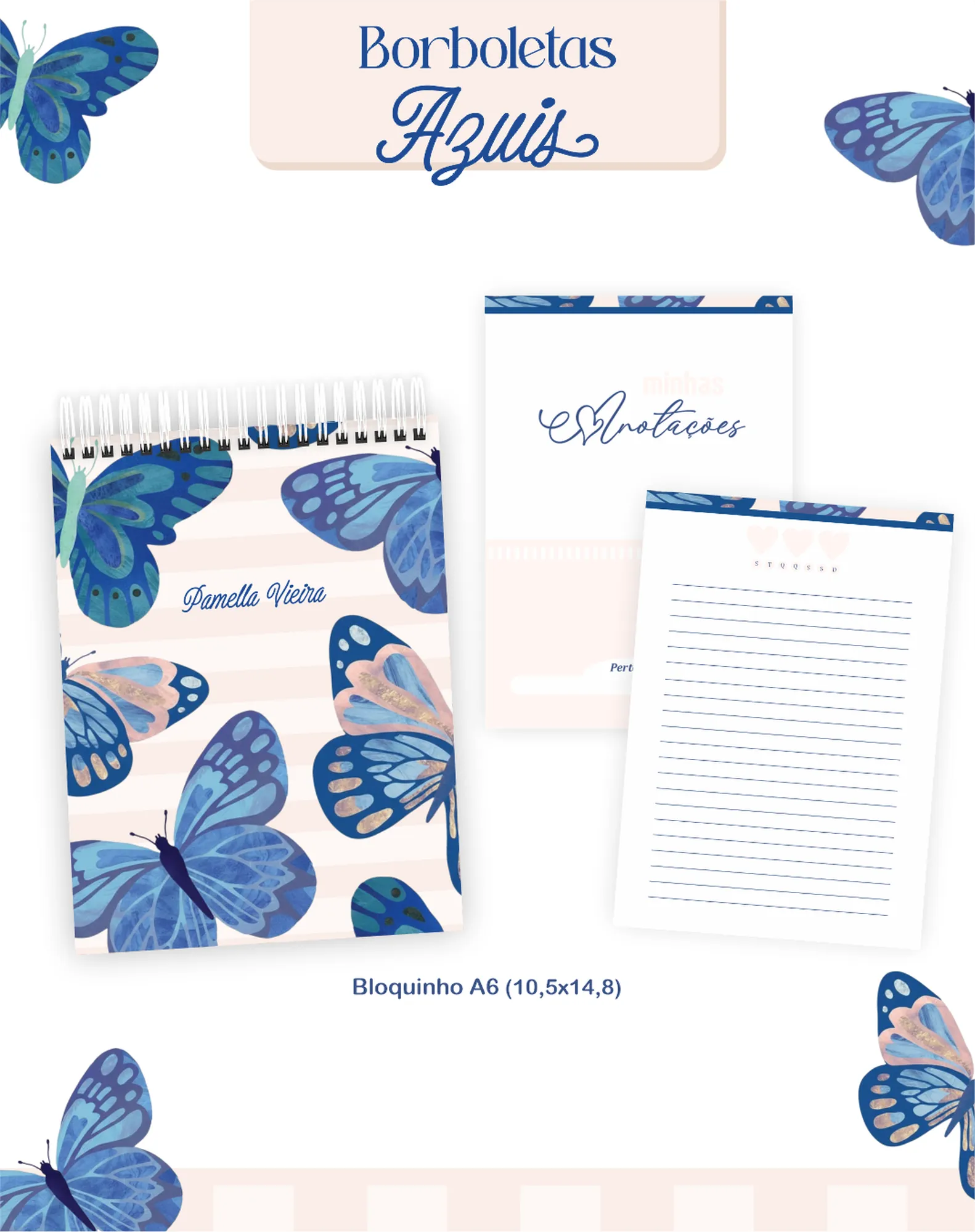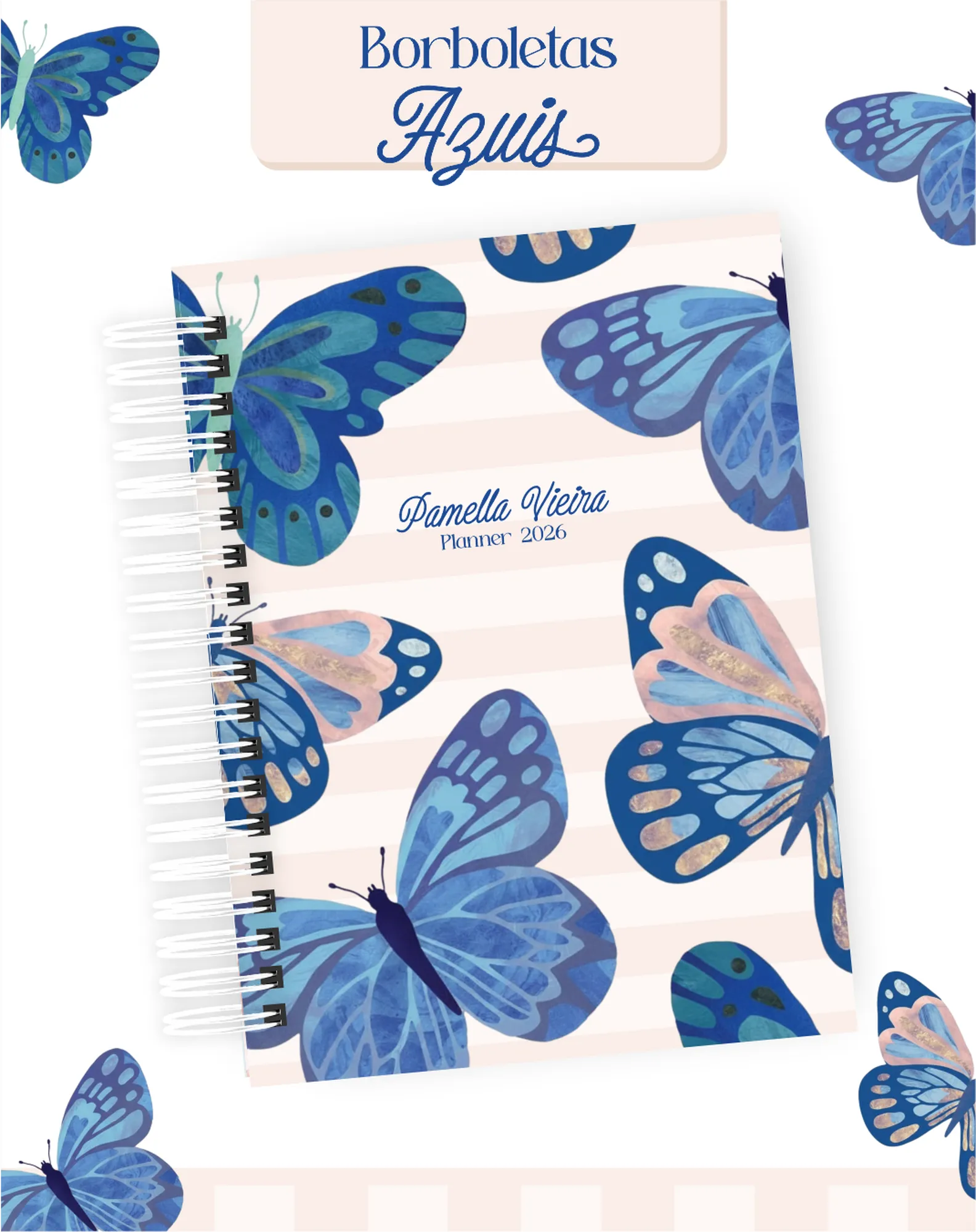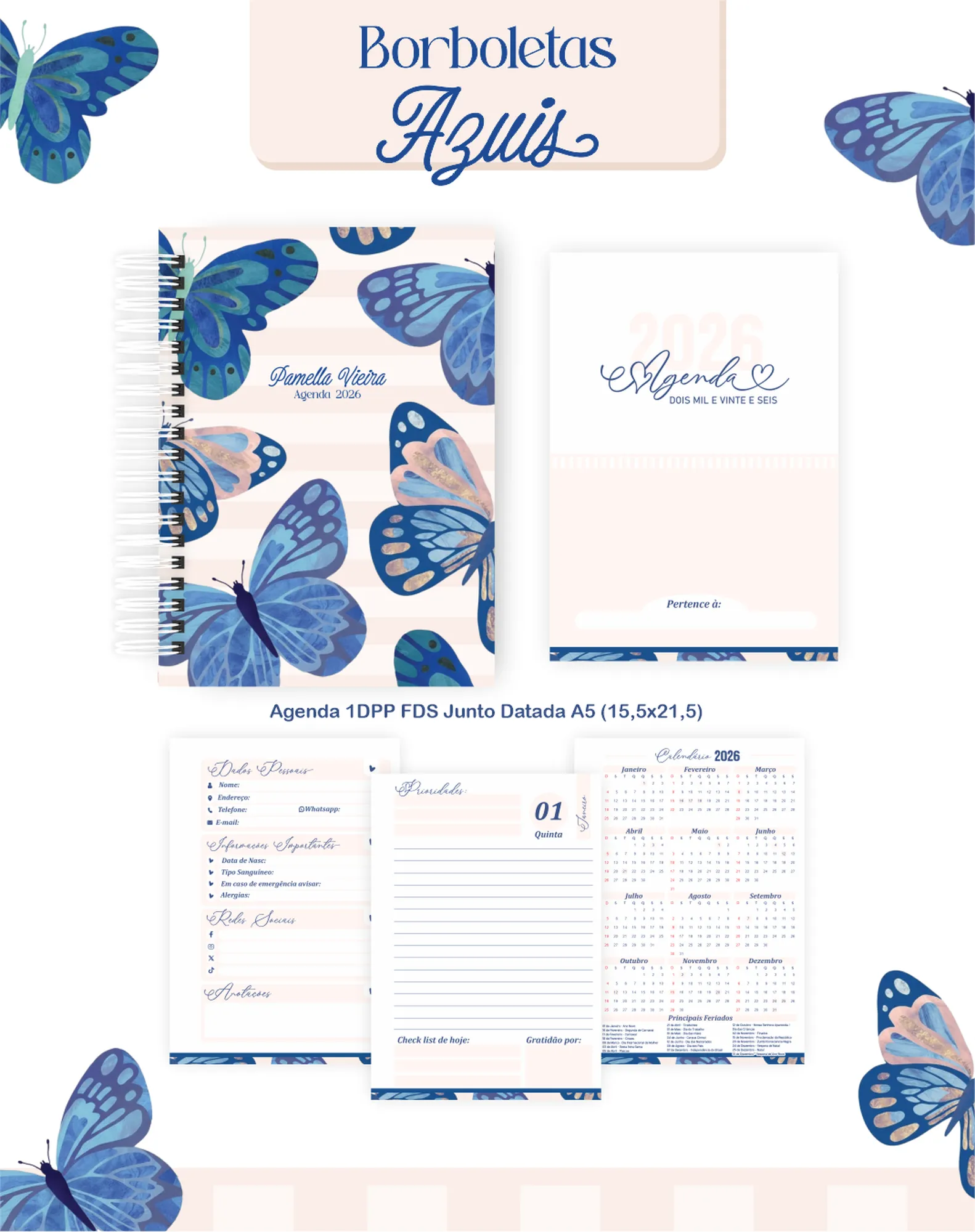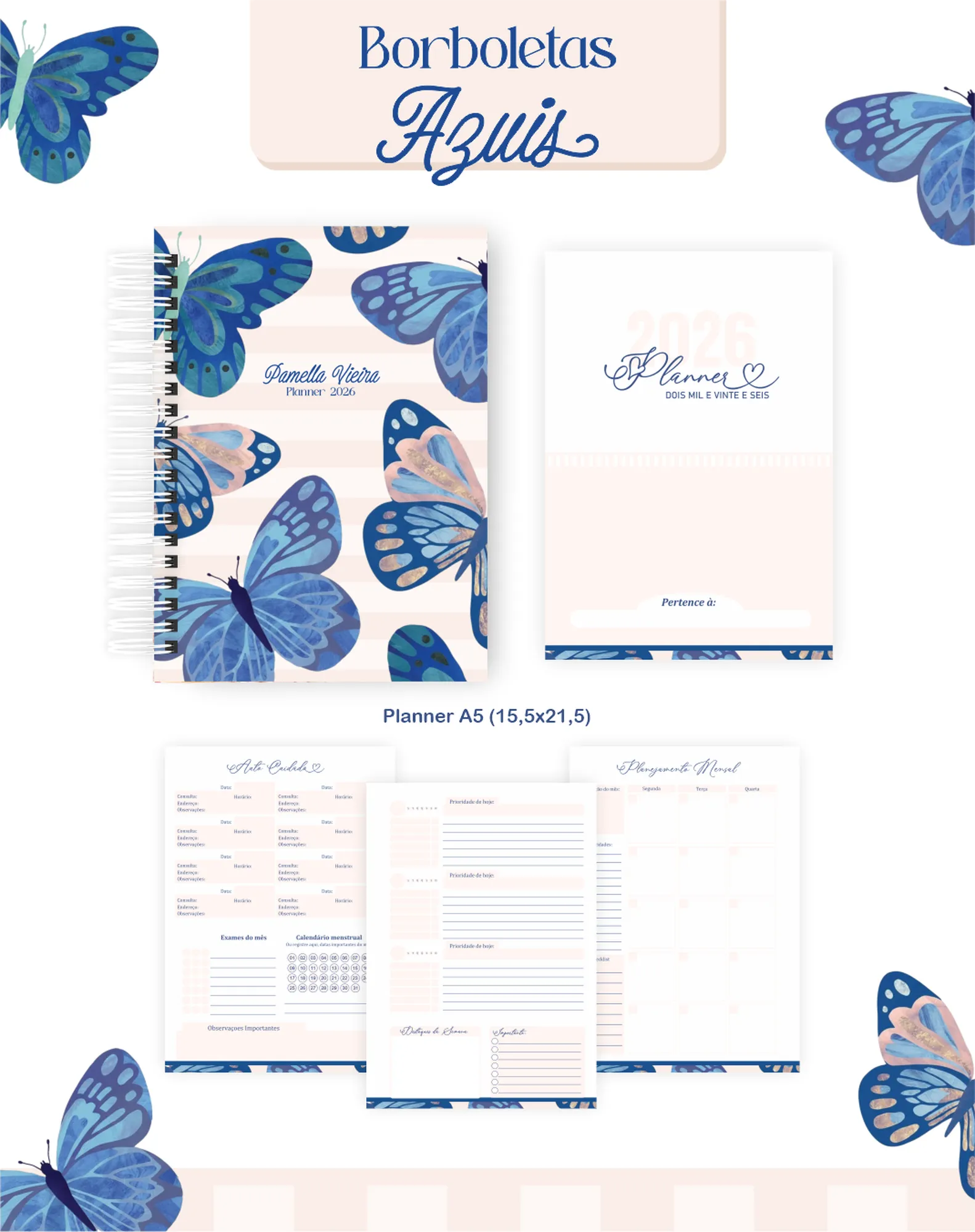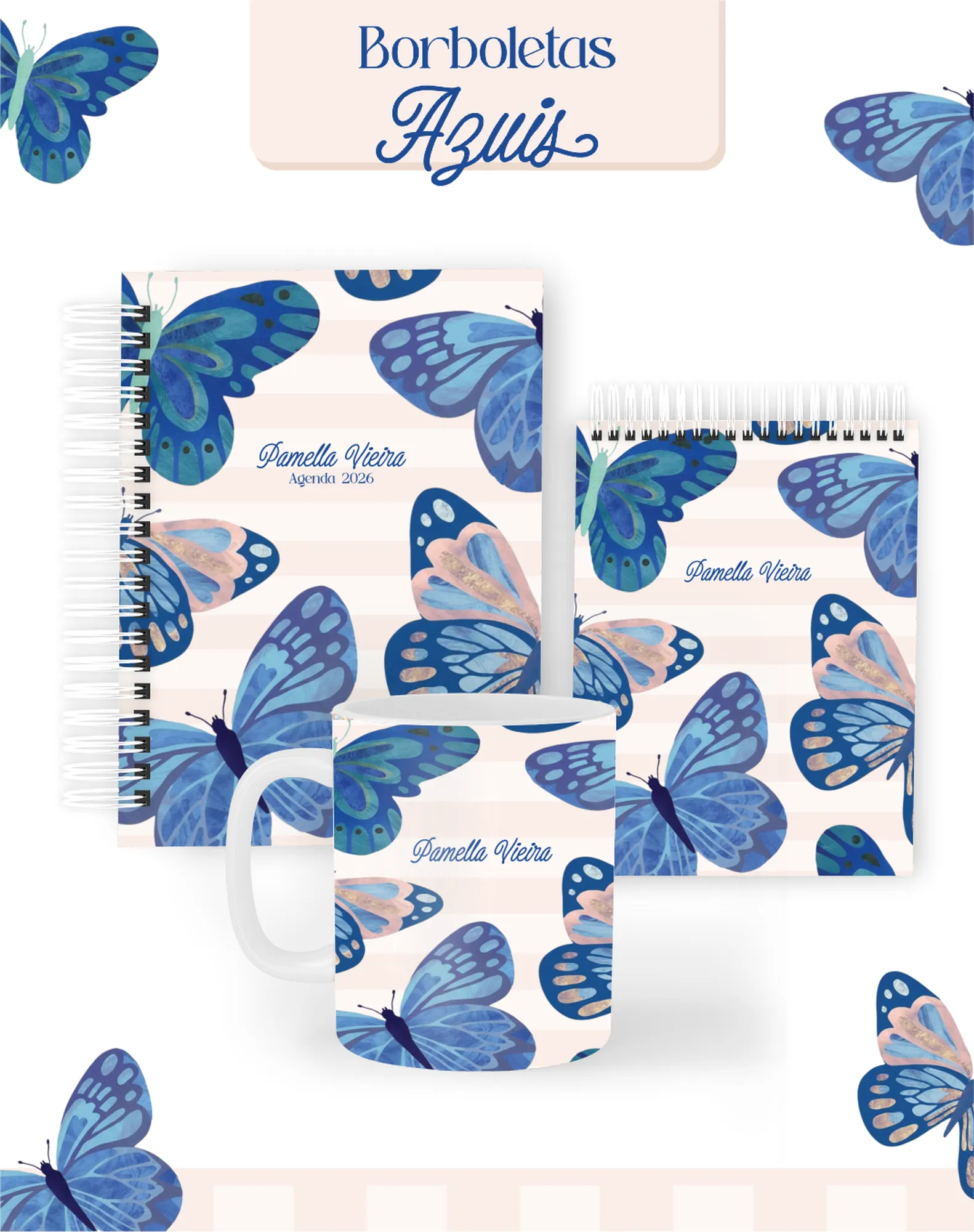 Prepare-se para encantar seus clientes com este pacote digital completo, perfeito para criar uma linha de produtos de papelaria única e inspiradora! Com o tema “Borboletas Azuis”, este projeto oferece tudo que você precisa para agendas datadas de 2026, planners permanentes e uma variedade de bloquinhos, além de elementos gráficos e mockups para divulgação.