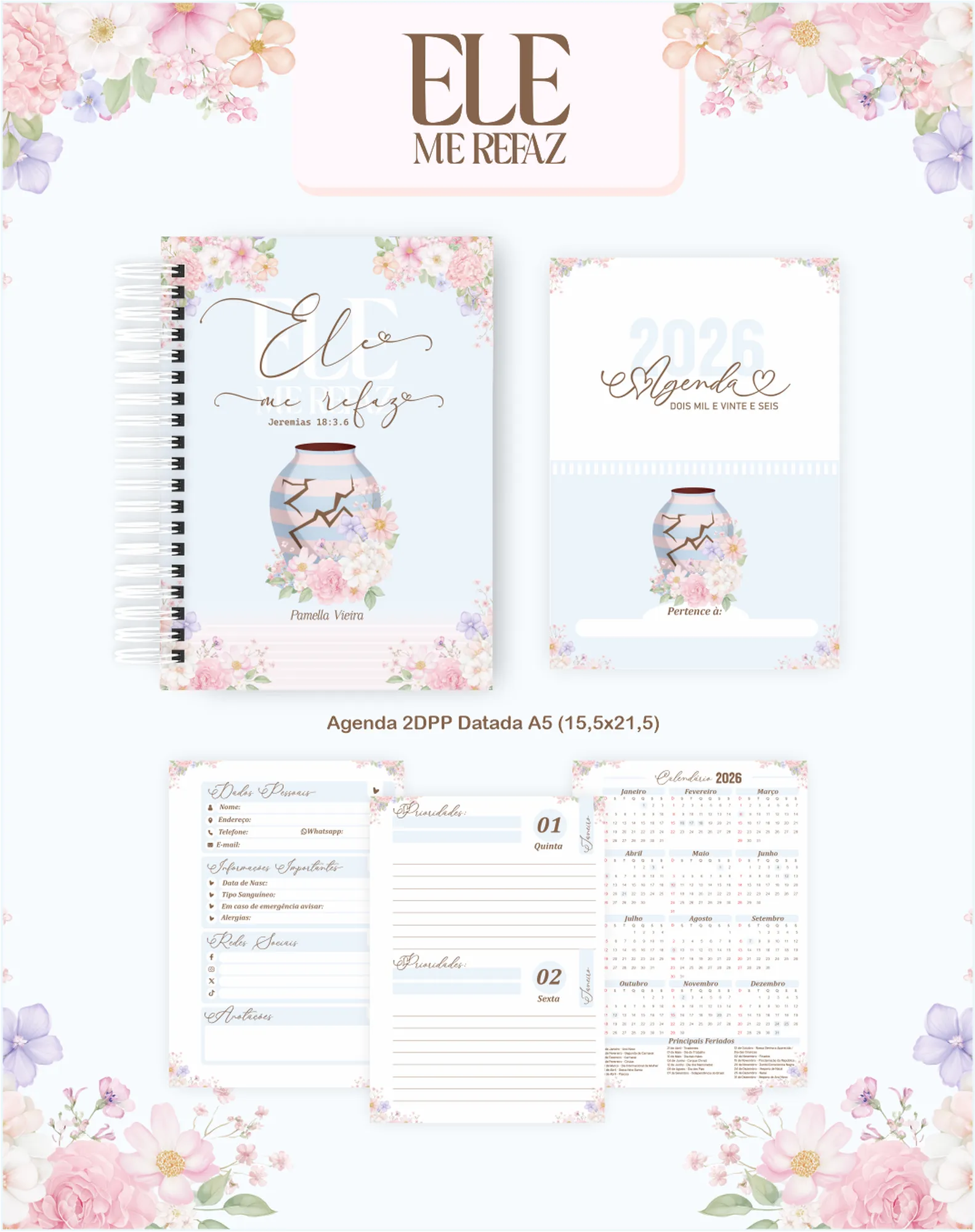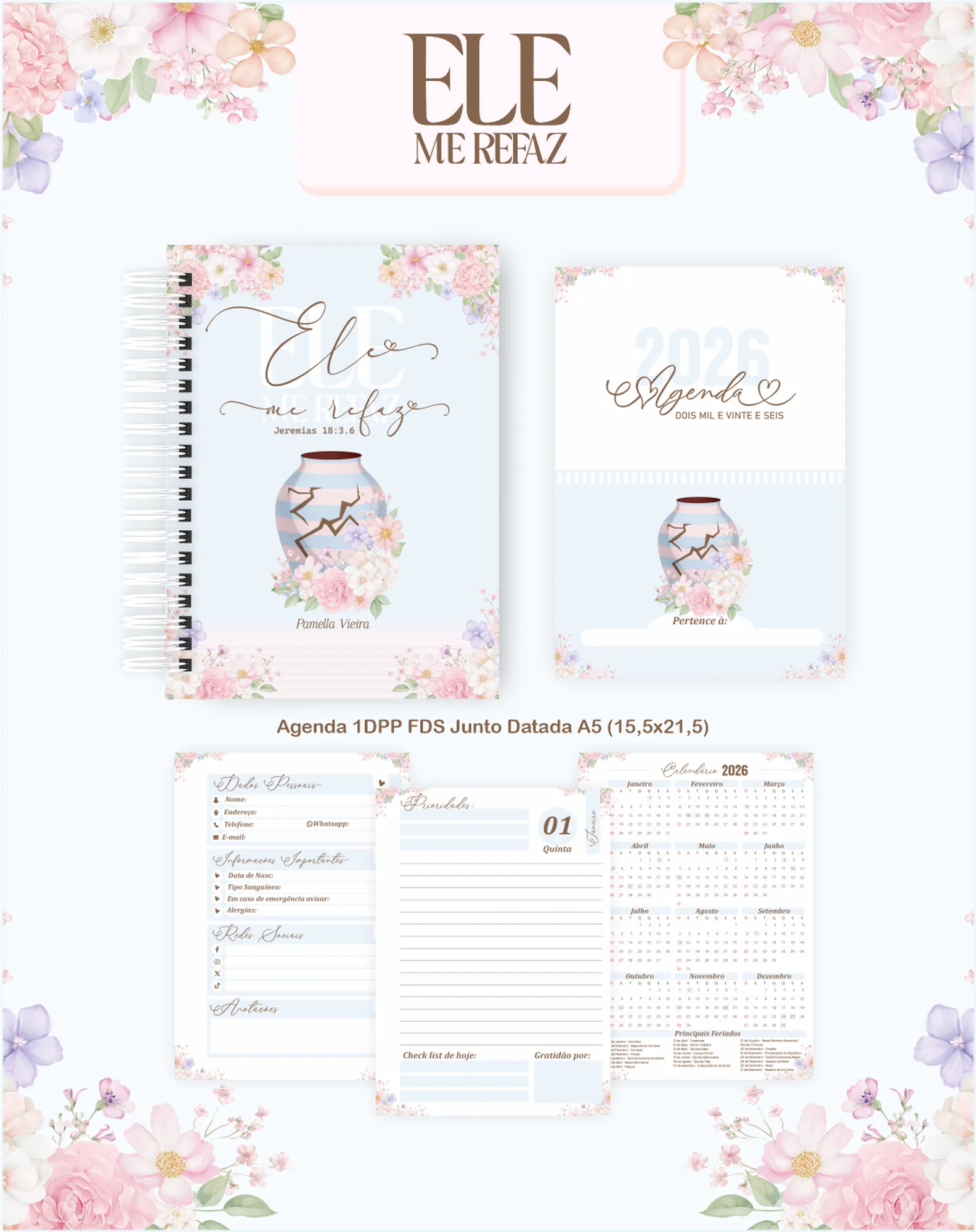 Organize-se e encante seus clientes com este pacote digital completo, perfeito para empreendedores e amantes da papelaria! O PROJETO AGENDA ELE ME REFAZ 01 – 2026 E PERMANENTE oferece uma vasta gama de arquivos prontos para impressão e personalização, permitindo que você crie produtos únicos e funcionais.