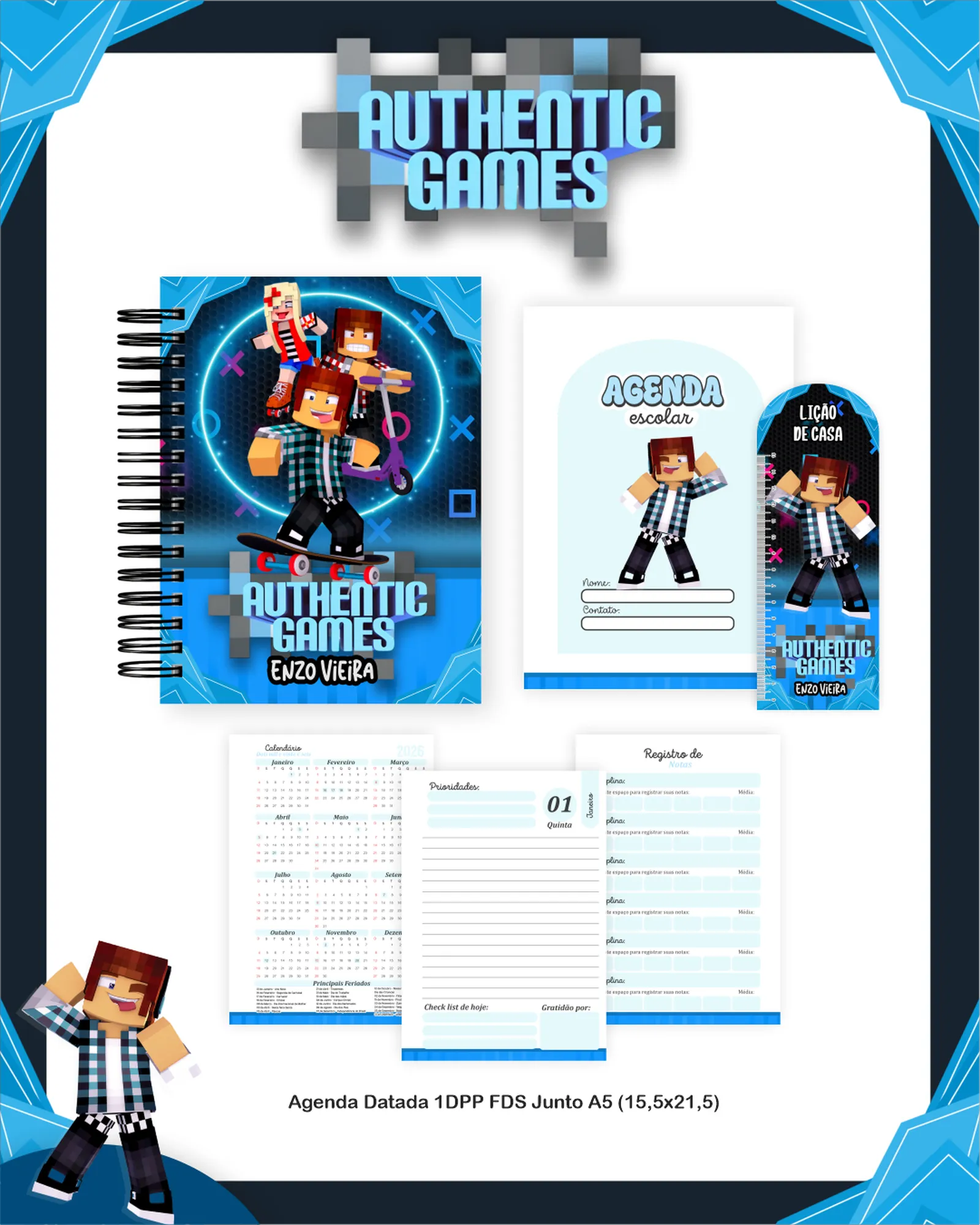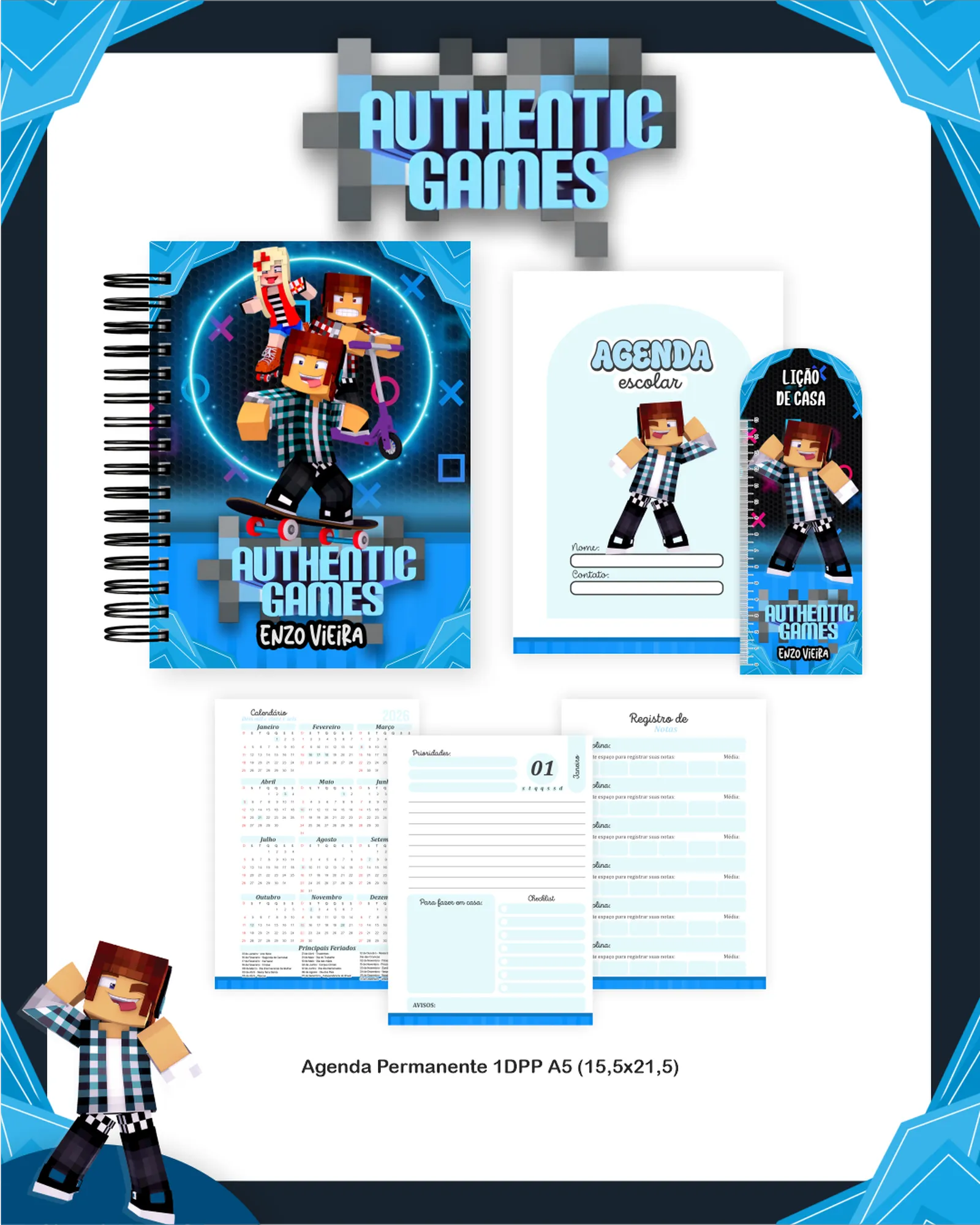 * Miolo: Agenda Escolar 1DPP Permanente A5, Dados Agenda Escolar A5 (.PDF).