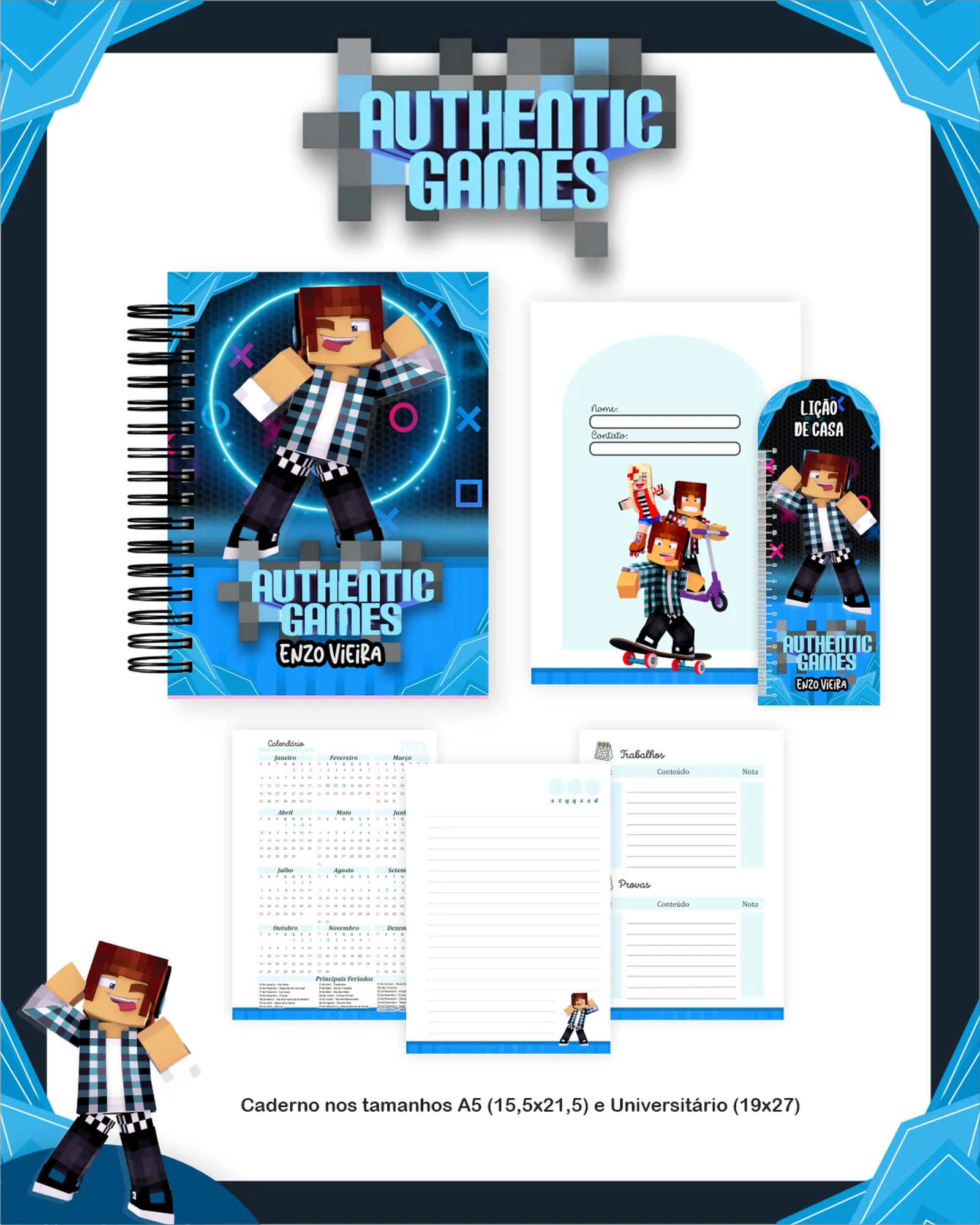 * Miolo: Caderno A5 Pautado, Dados Caderno Escolar A5 (.PDF).