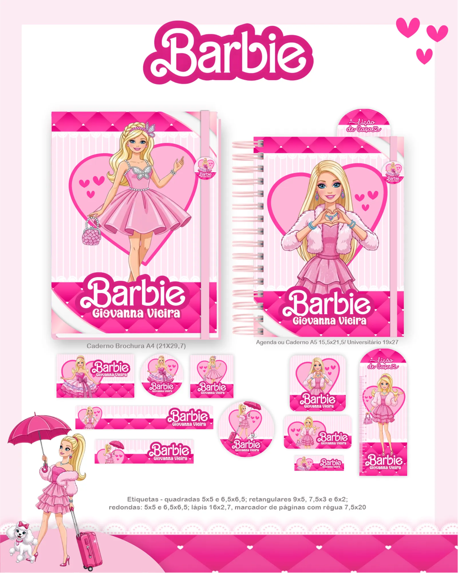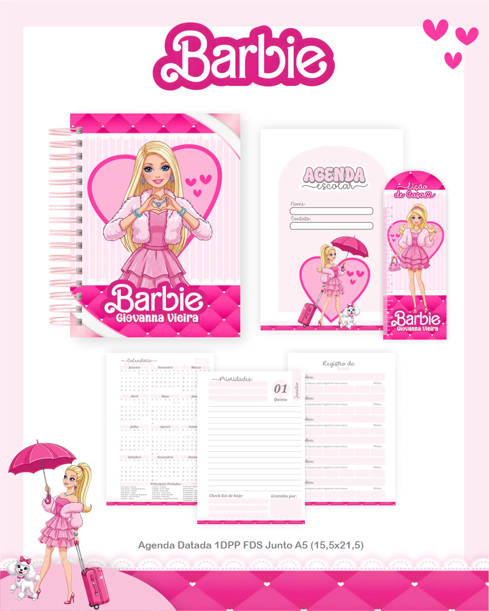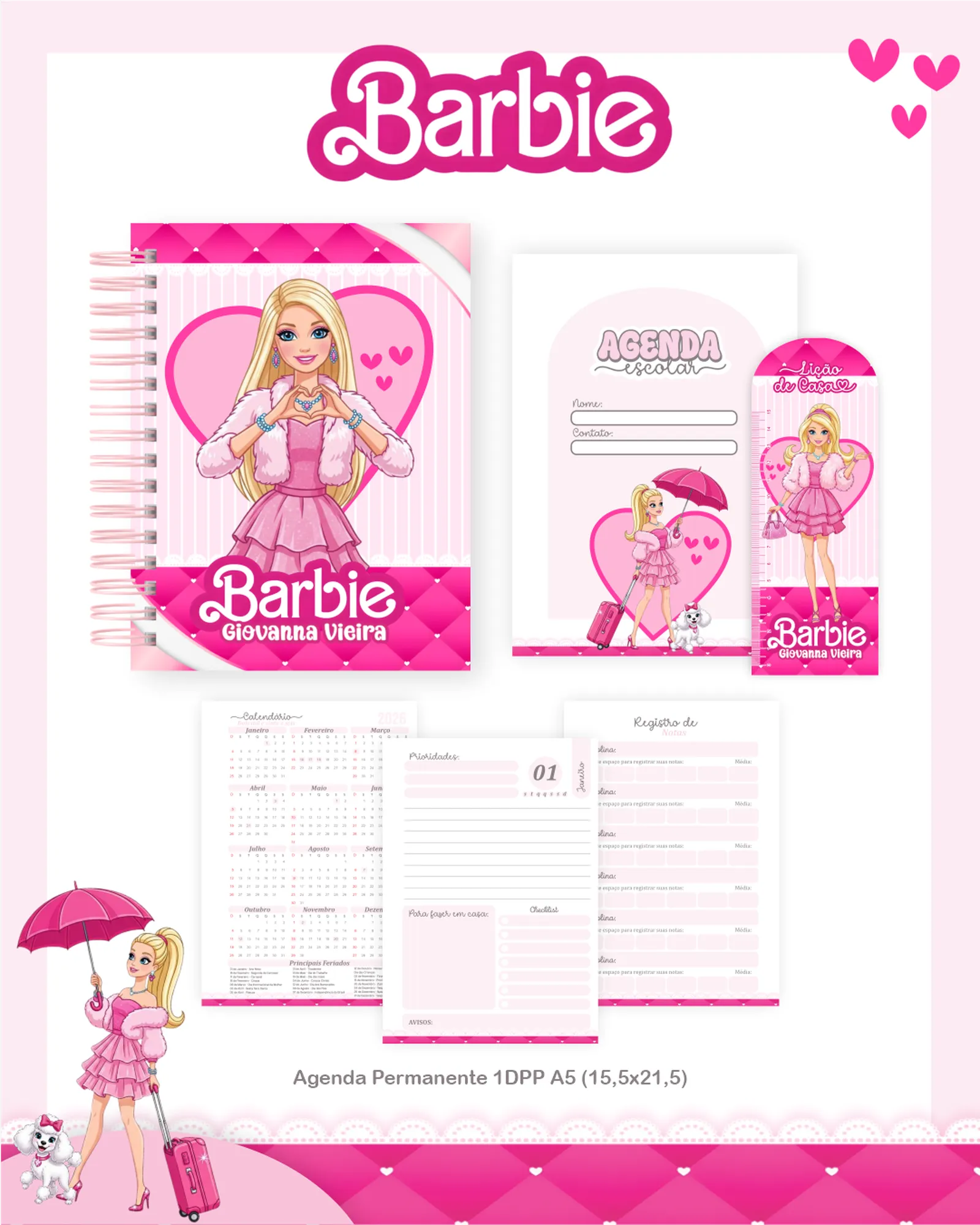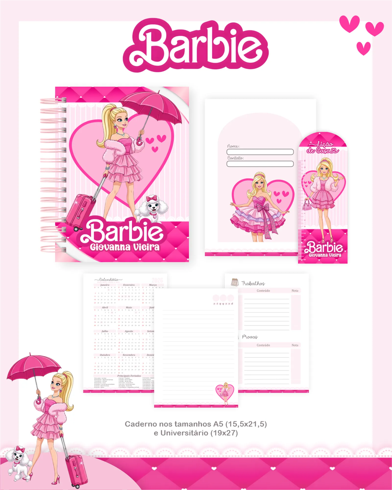 Este pacote digital exclusivo oferece uma coleção completa de arquivos para personalização e criação de produtos, com foco no tema Barbie. Perfeito para designers, artesãos e empreendedores que buscam materiais de alta qualidade para agendas, cadernos, squeezes, réguas e muito mais, prontos para uso em seus projetos.