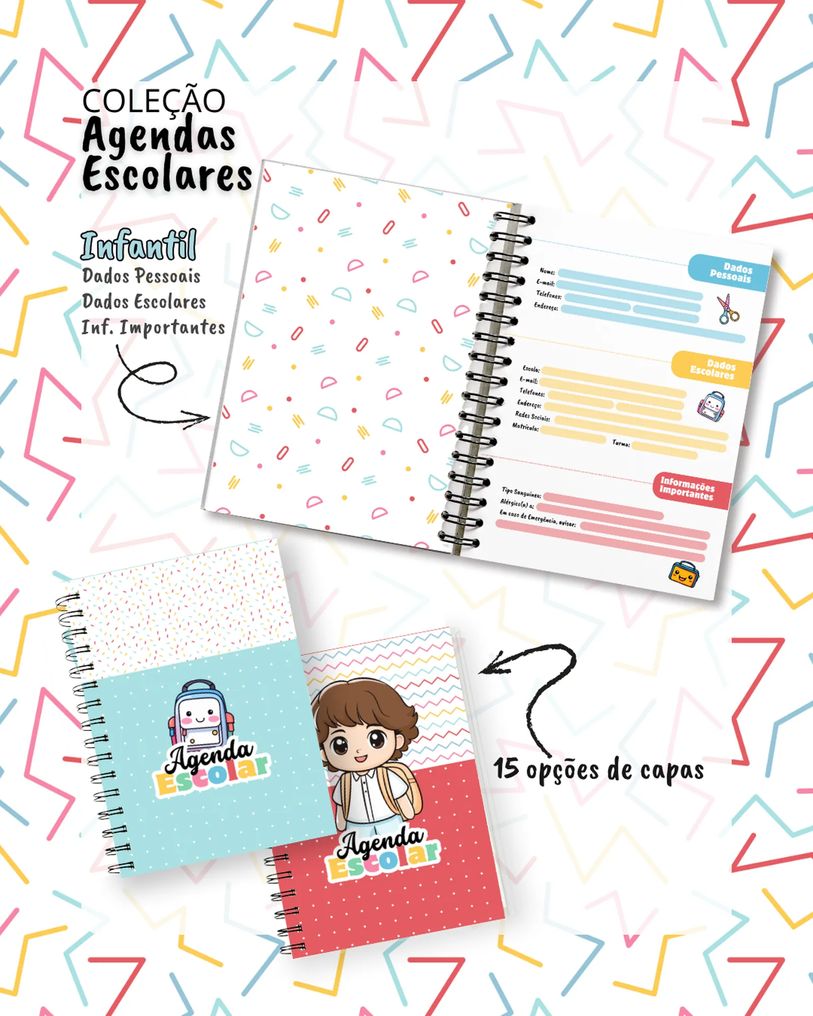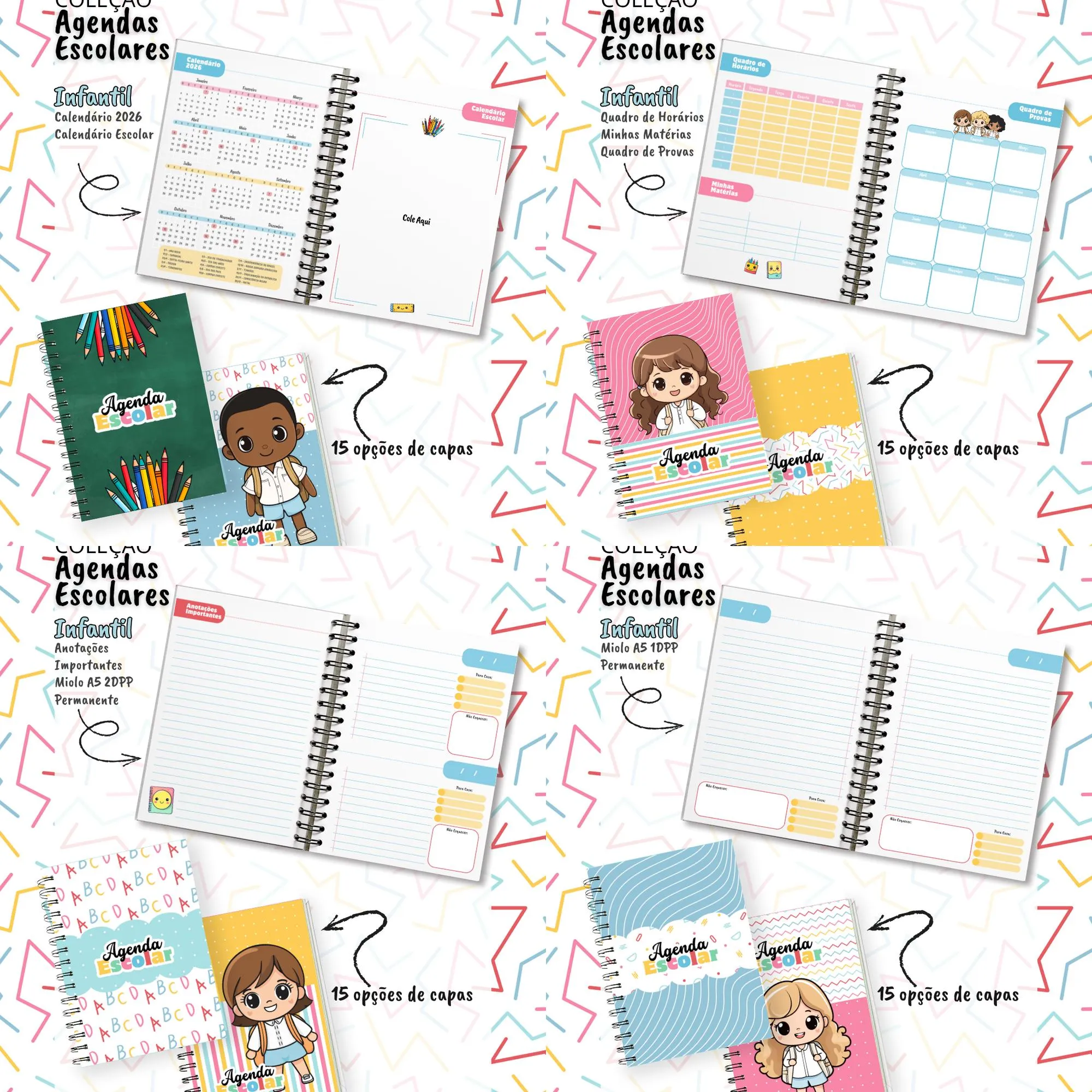Este pacote digital completo é ideal para quem busca criar e personalizar agendas escolares e de creche, oferecendo uma vasta gama de recursos para um projeto profissional e criativo! 🚀