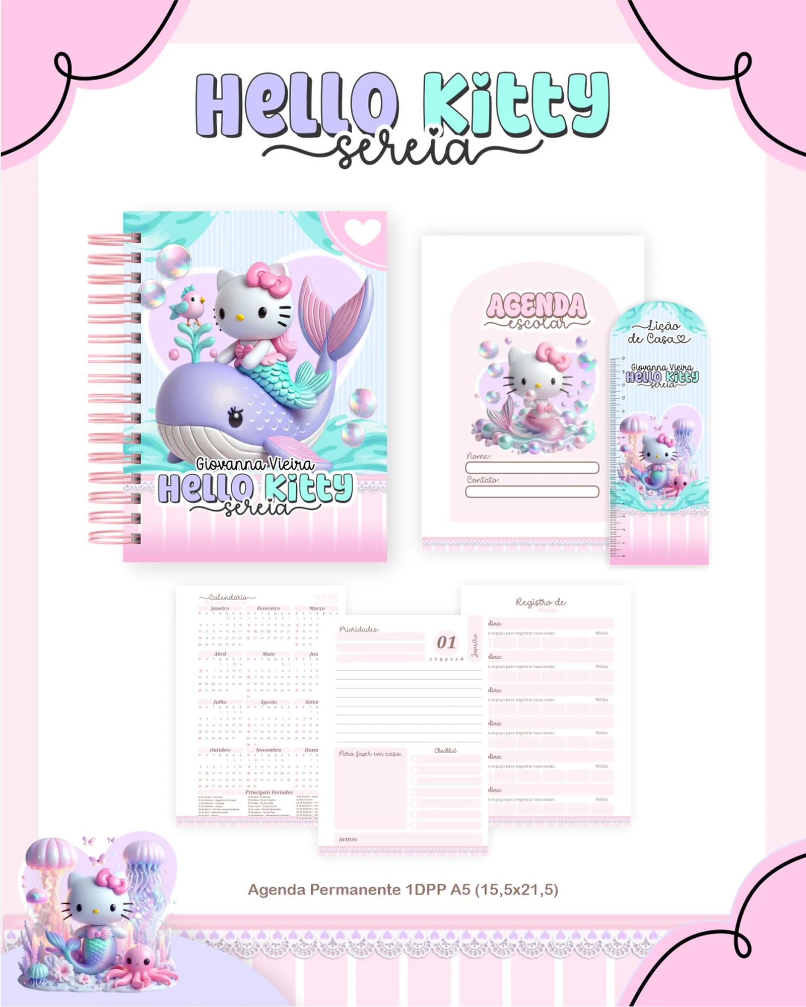 Arquivo Digital AGENDA ESCOLAR HELLO KITTY SEREIA 01 – 2026 E PERMANENTE