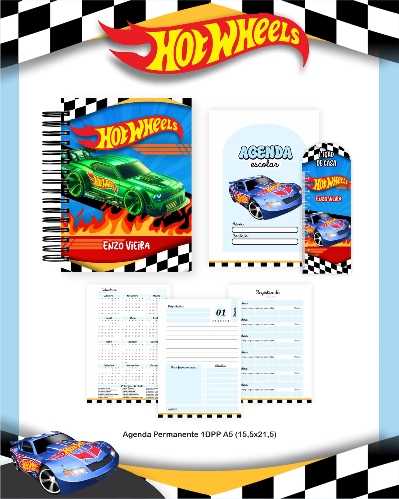 * Miolo (2 arquivos PDF: Agenda A5 Permanente, Dados Agenda Escolar A5)