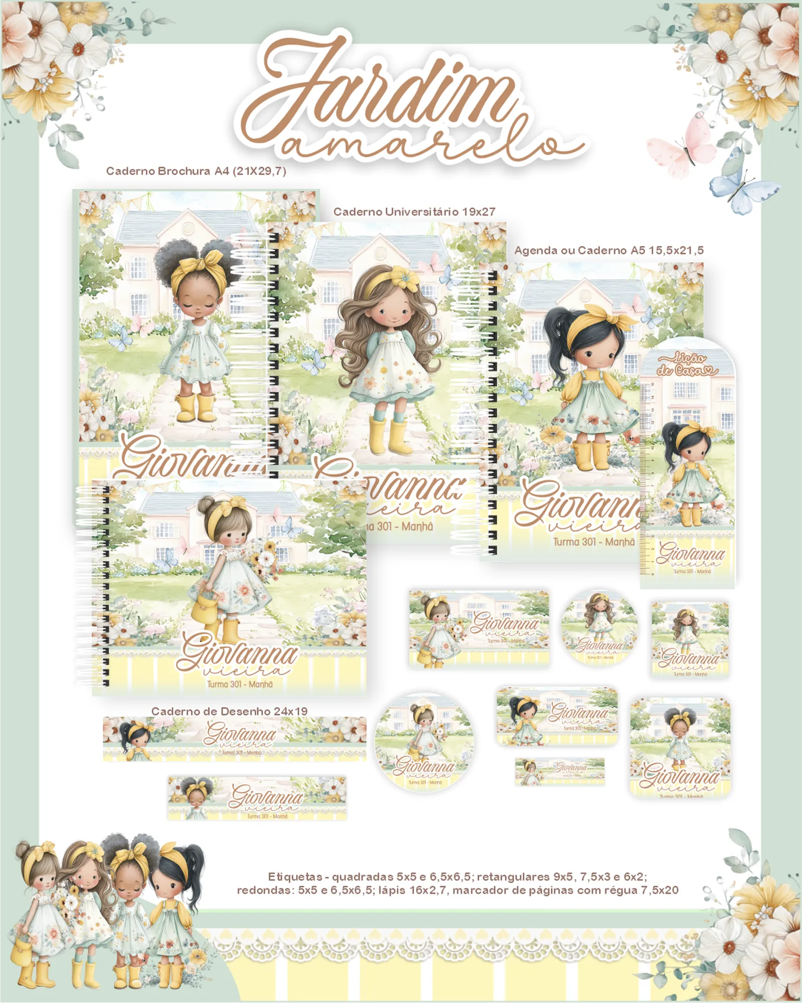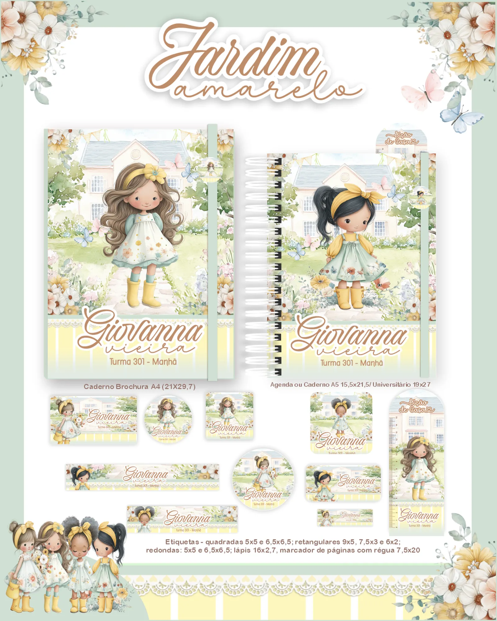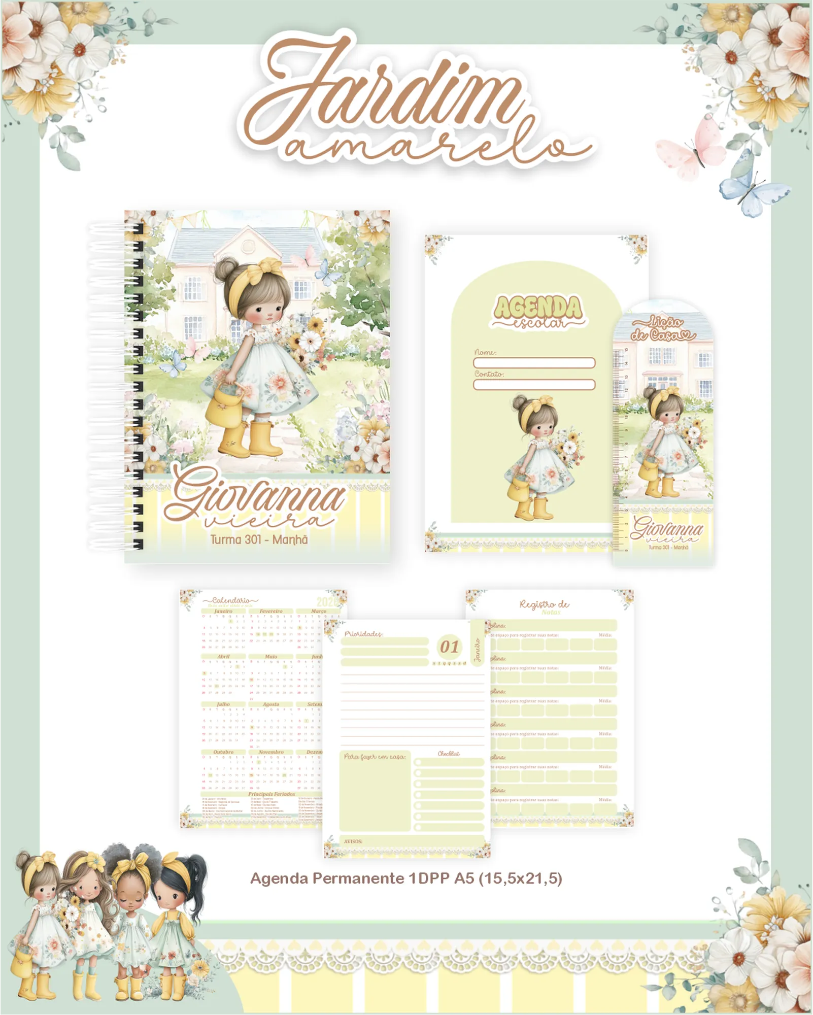 Este pacote digital exclusivo oferece um universo de recursos para seus projetos de papelaria e design, com foco em agendas e cadernos, tudo ambientado no encantador tema “Jardim Amarelo”. Perfeito para quem busca praticidade e beleza em seus produtos! ✨