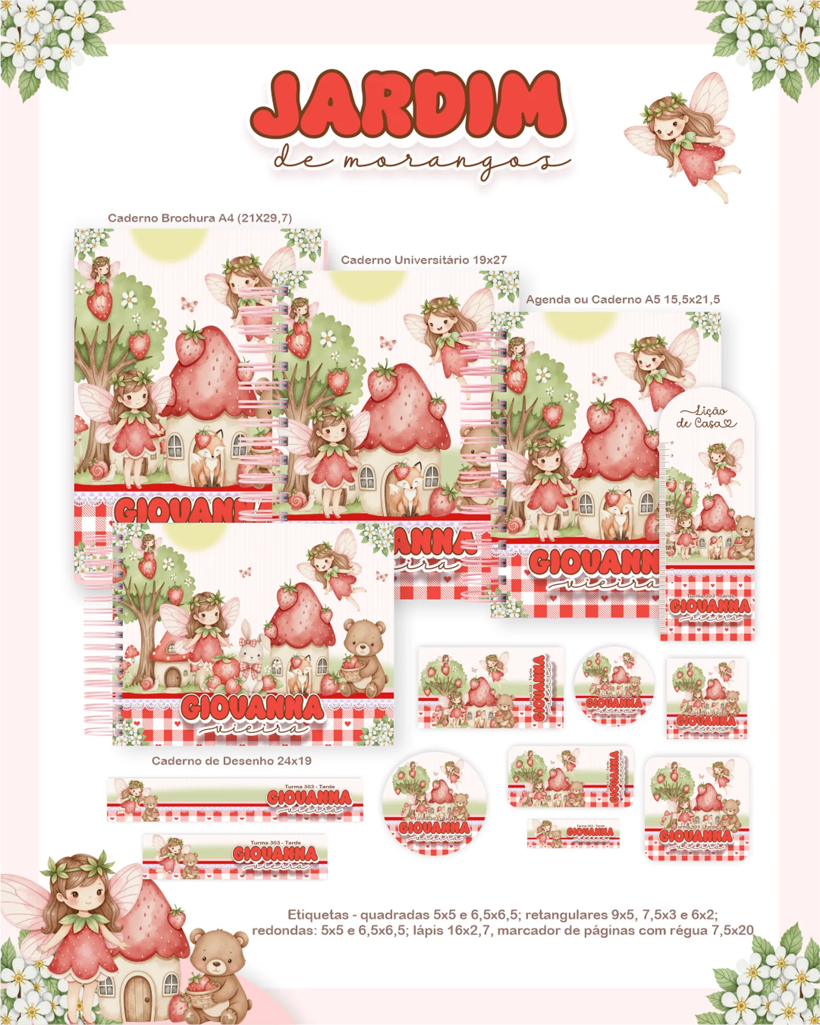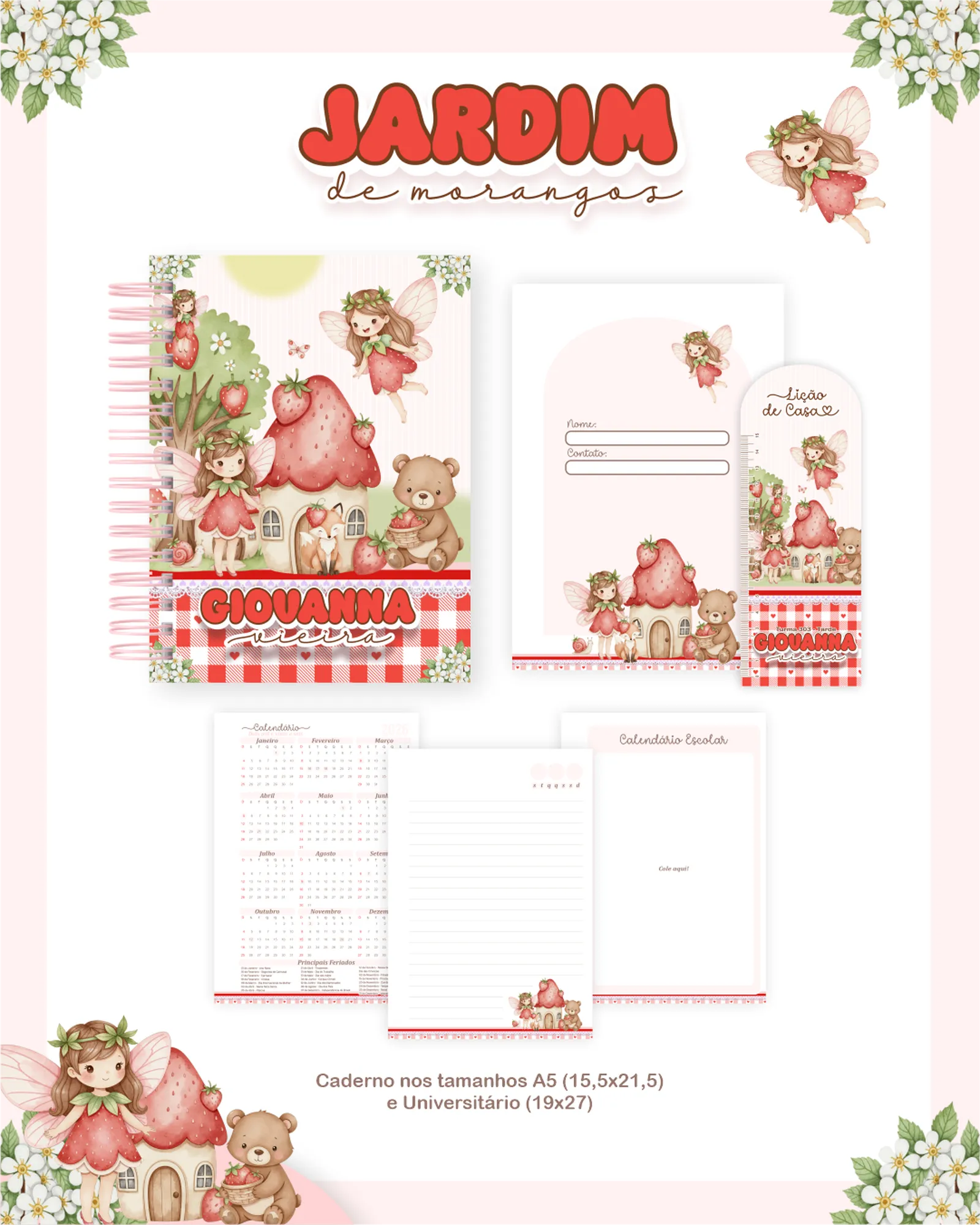Este pacote digital com o tema “JARDIM DE MORANGOS” é perfeito para quem busca criar produtos de papelaria personalizados e encantadores. Inclui uma variedade de arquivos prontos para uso em projetos de cadernos, agendas e outros itens.