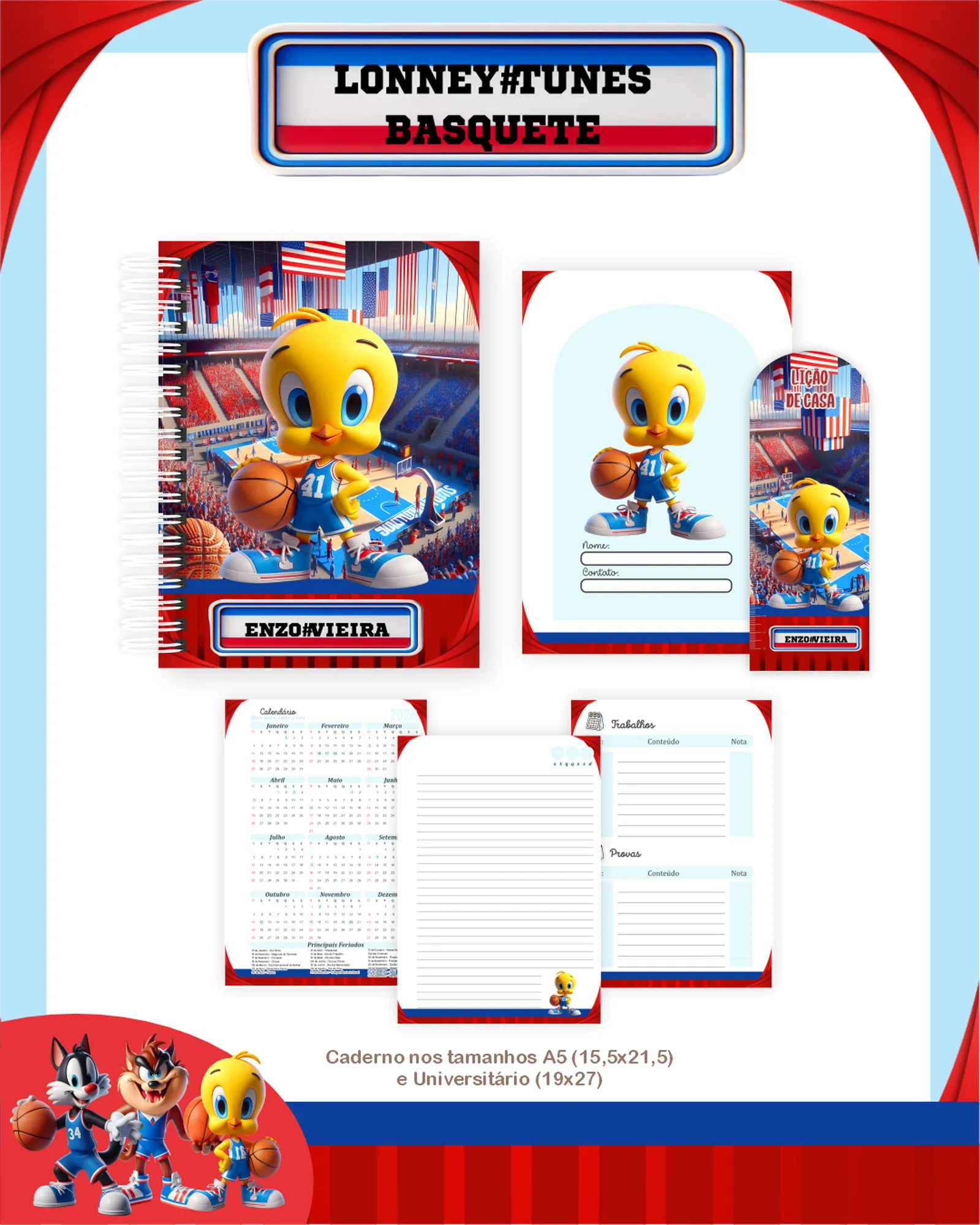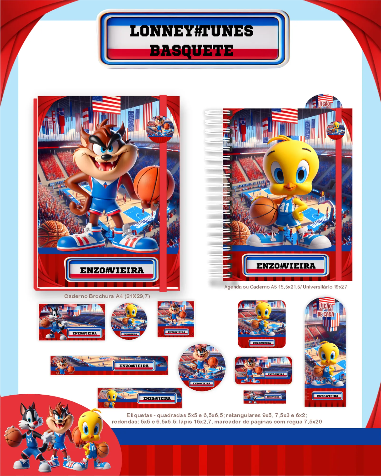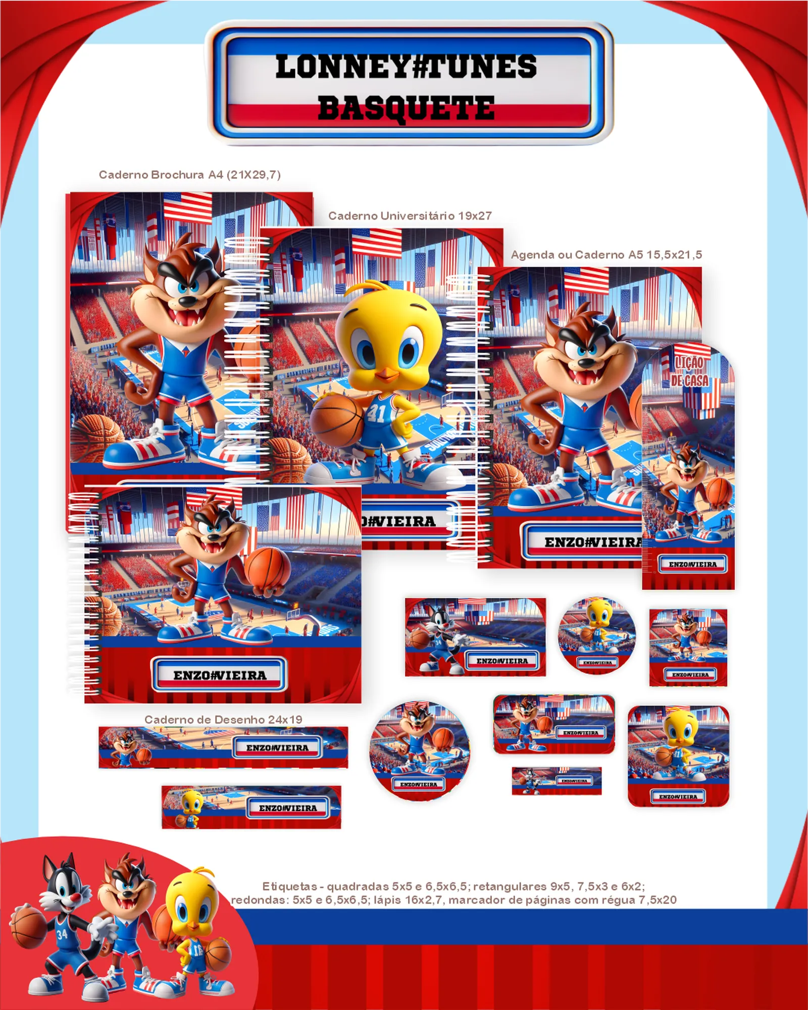 * 🎨 **Design Exclusivo:** Uma arte principal “LONNEY TUNES BASQUETE” (PNG) para inspirar todos os seus projetos.