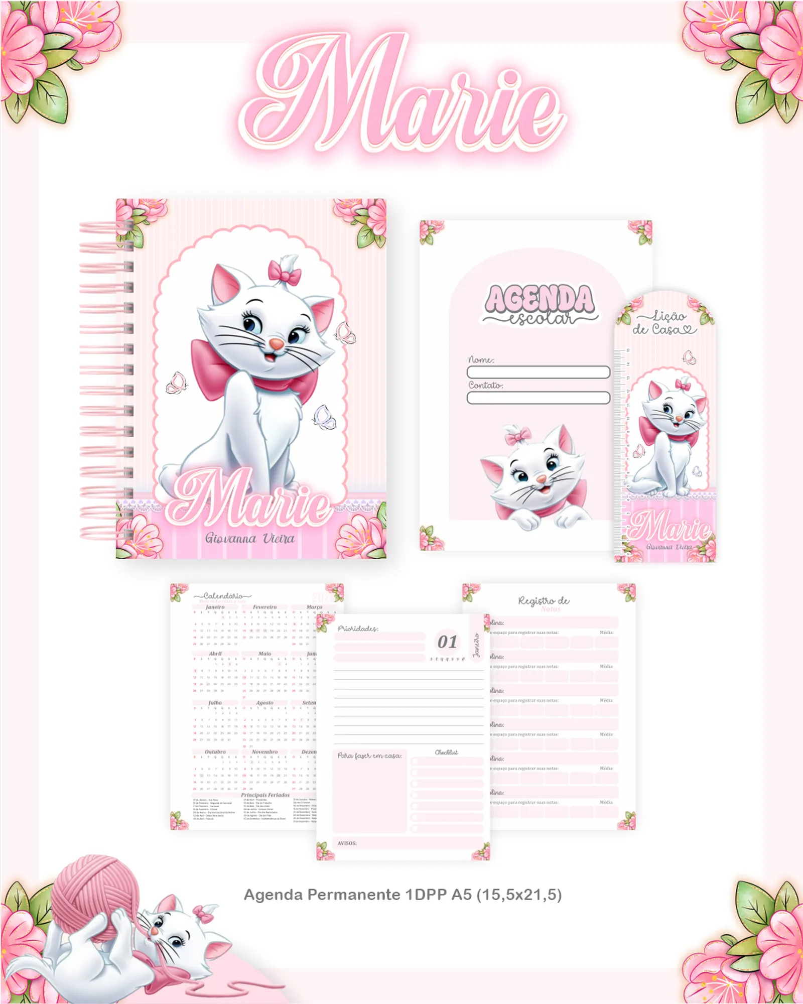 Este pacote digital completo oferece uma vasta gama de recursos para personalização e criação de materiais escolares e de escritório, ideal para projetos de encadernação e papelaria.