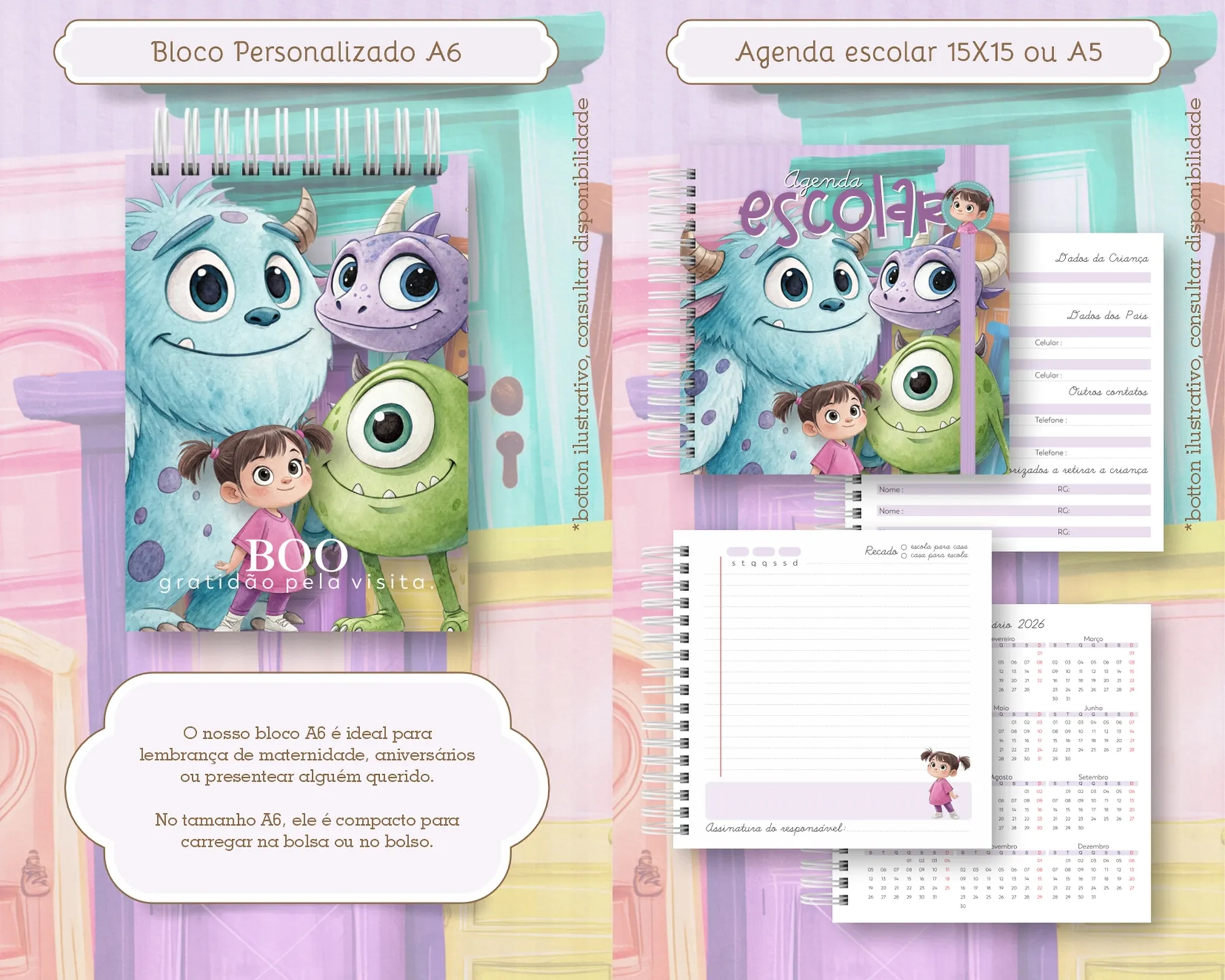 📚 **Combo Caderno + Agenda Monstro S.A:**