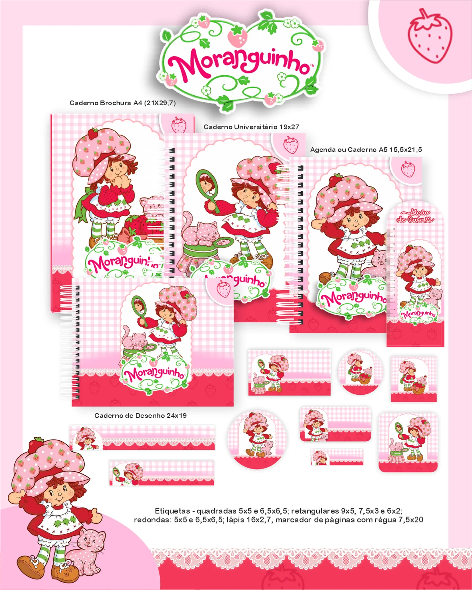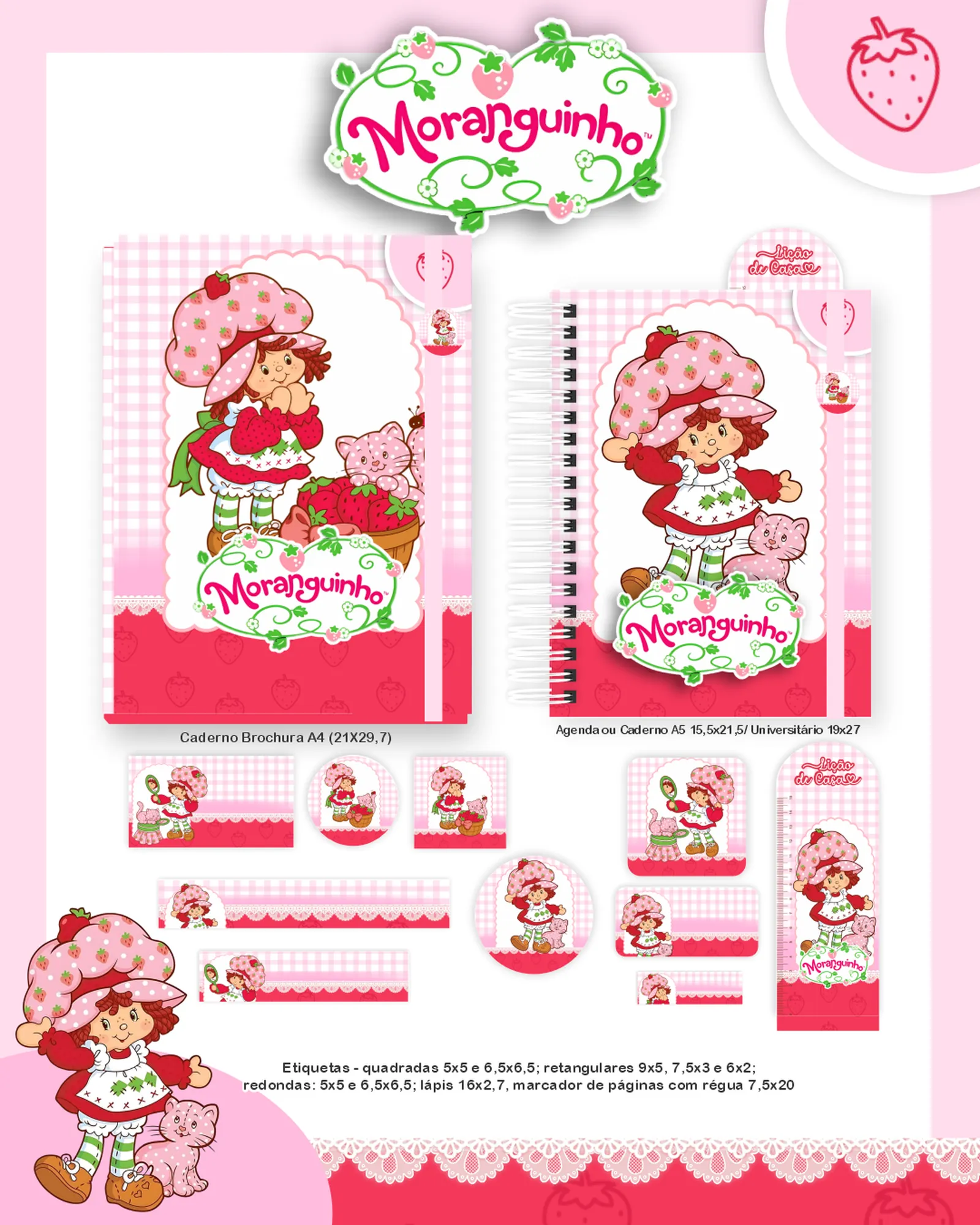 Este pacote digital exclusivo oferece uma vasta coleção de arquivos prontos para personalização, ideal para projetos de papelaria e brindes, com foco no tema Moranguinho.