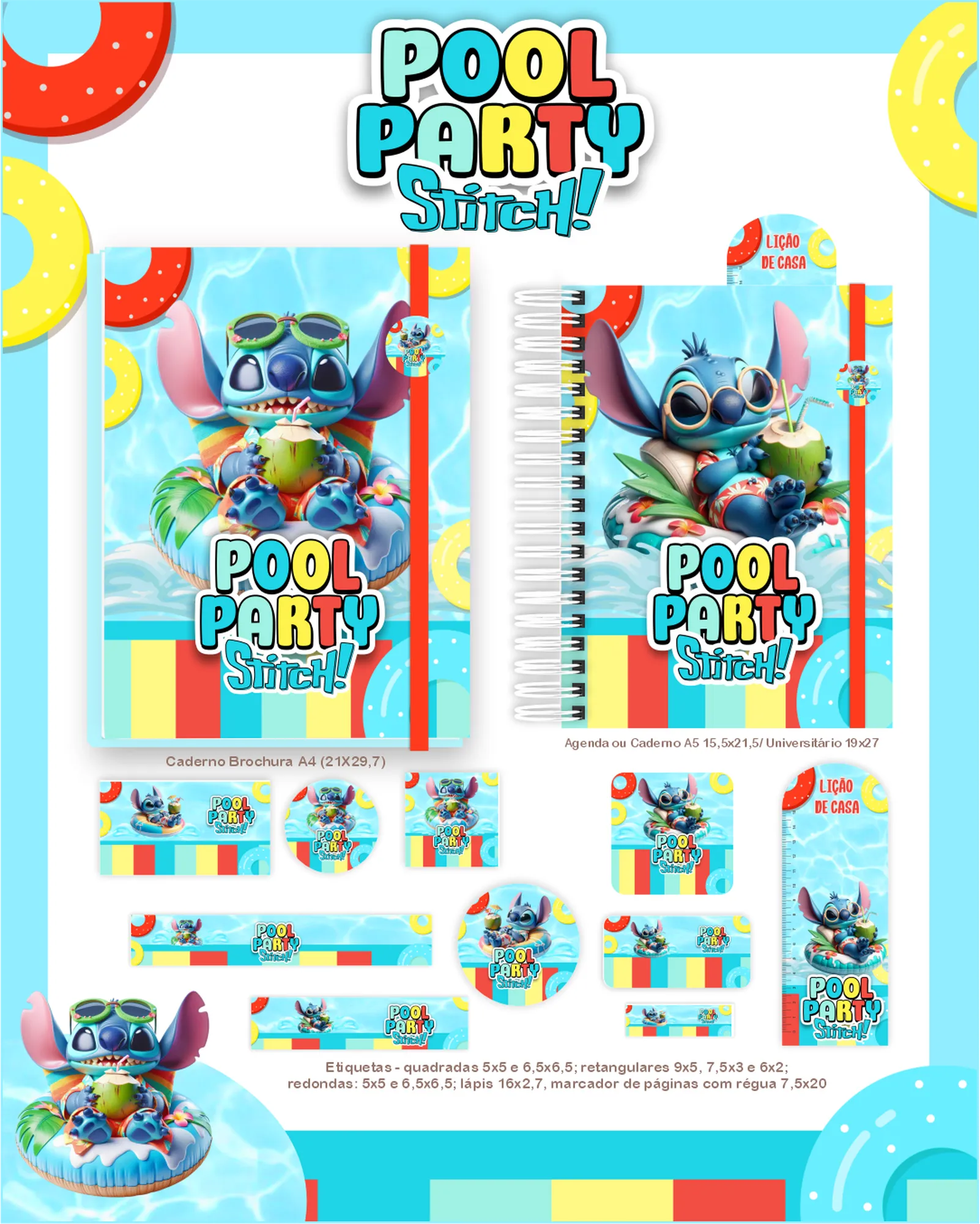 ✨ Este pacote digital exclusivo “STITCH POOL PARTY” é perfeito para personalizar diversos itens com o tema divertido do Stitch na piscina! 🏖️ Você receberá uma variedade de arquivos prontos para impressão e personalização, incluindo: