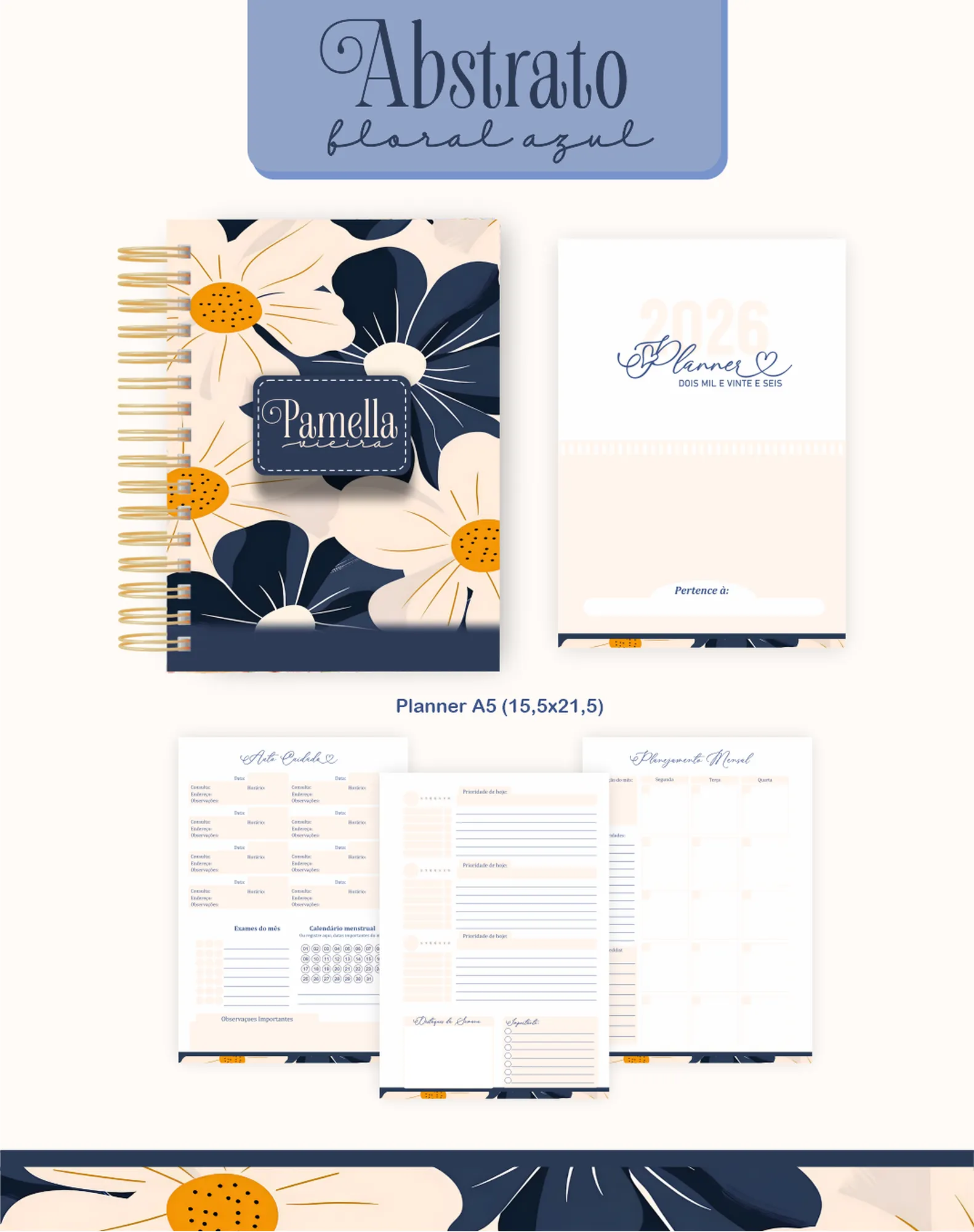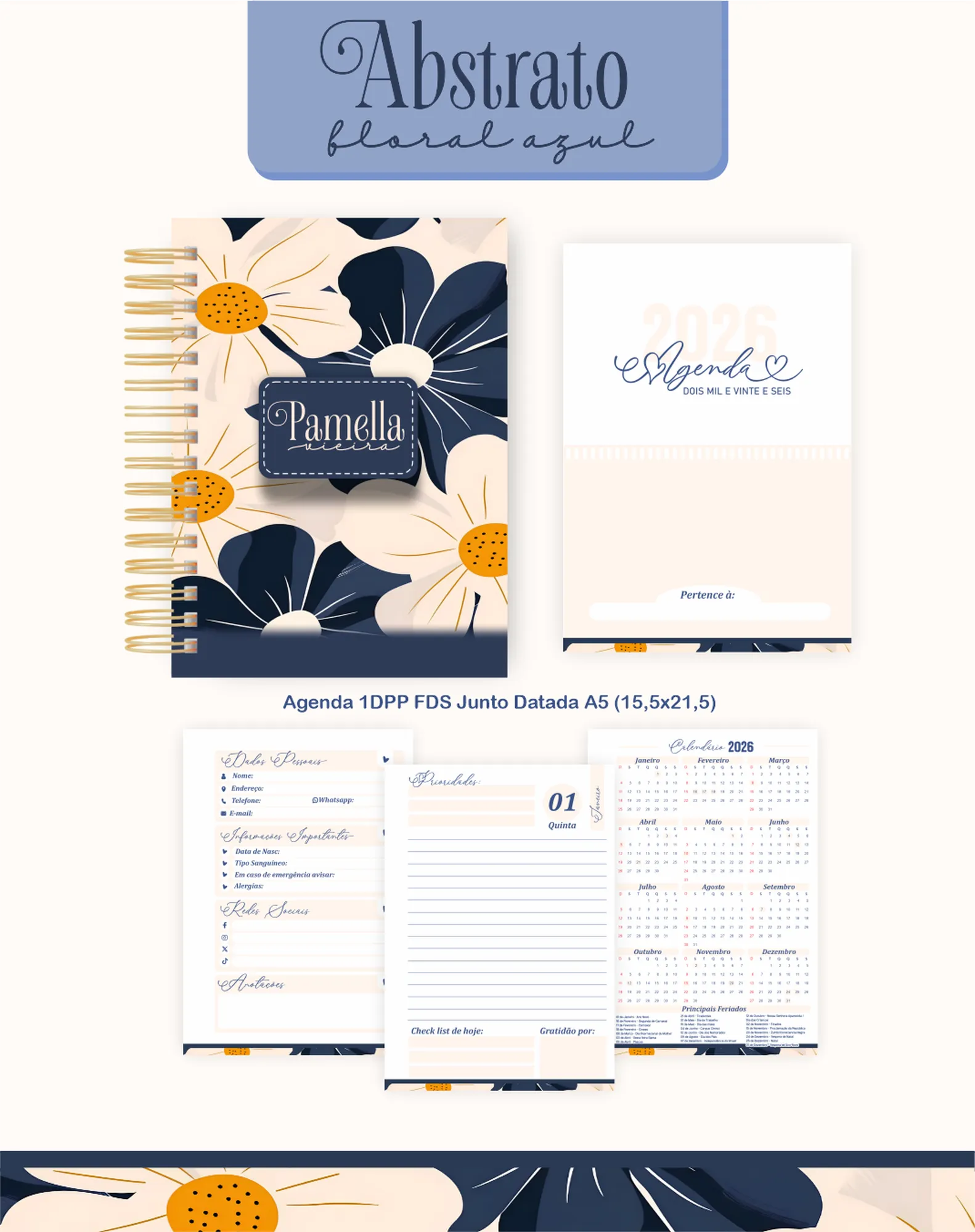 Prepare-se para organizar seu ano com o **PROJETO AGENDA FLORAL AZUL 03 – 2026 E PERMANENTE**! 🌸 Este pacote digital completo oferece tudo o que você precisa para criar produtos de papelaria encantadores e funcionais, com um design floral azul exclusivo. Ideal para empreendedores e amantes de papelaria.