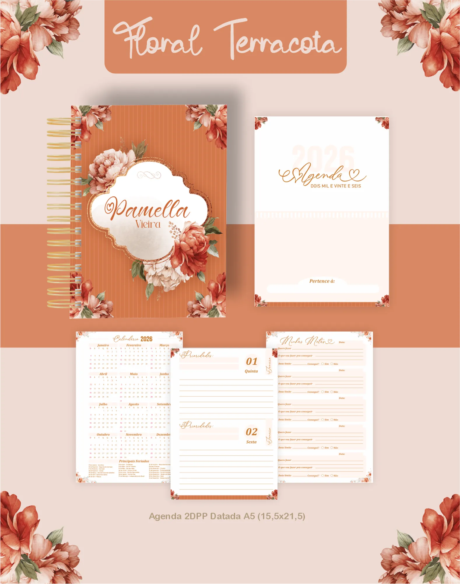 Prepare-se para organizar seu ano com o encantador ✨ **PROJETO AGENDA FLORAL TERRACOTA 02 – 2026 E PERMANENTE** ✨! Este pacote digital completo oferece tudo o que você precisa para criar produtos personalizados e funcionais, com um toque floral e elegante. Ideal para empreendedores e amantes de papelaria.