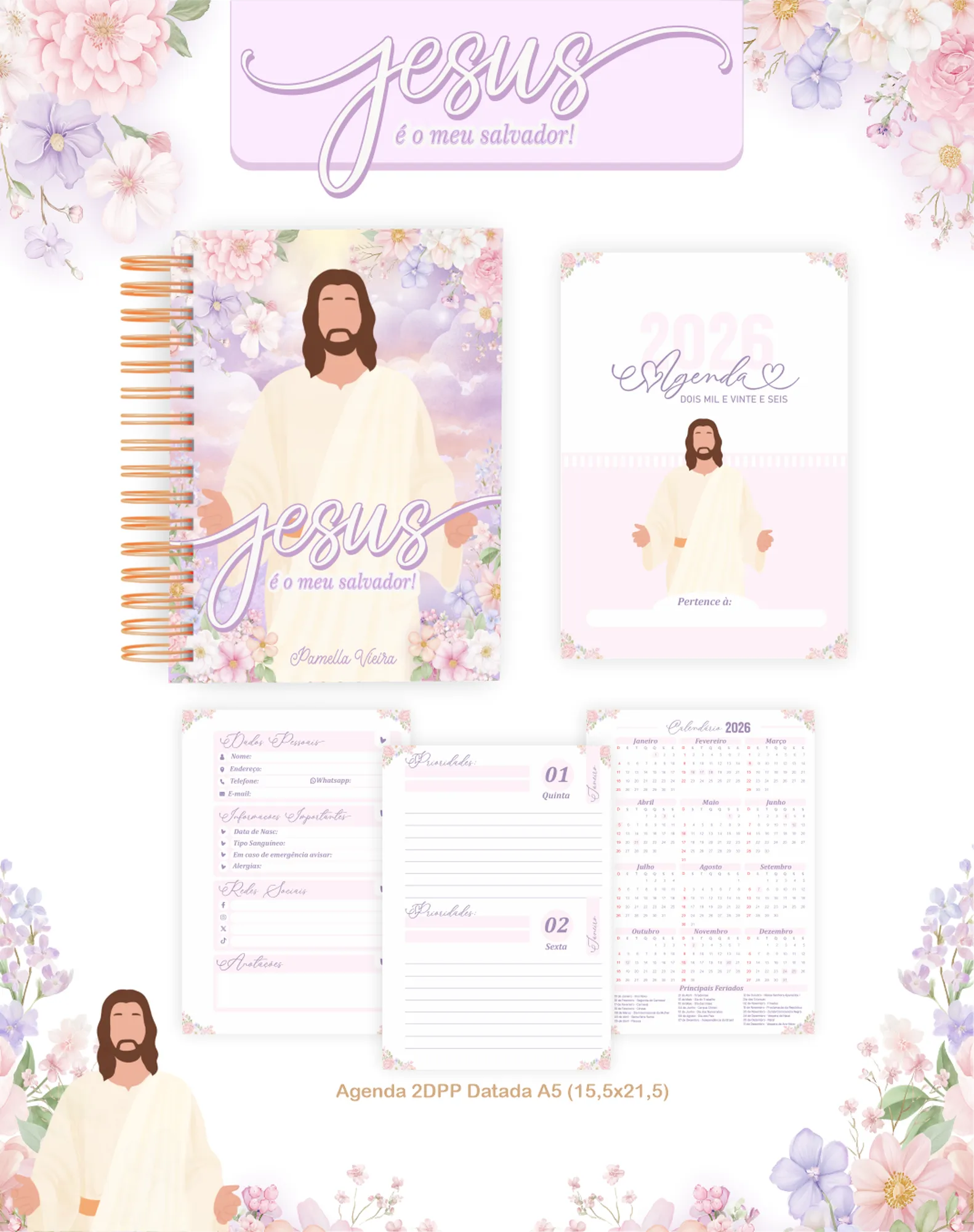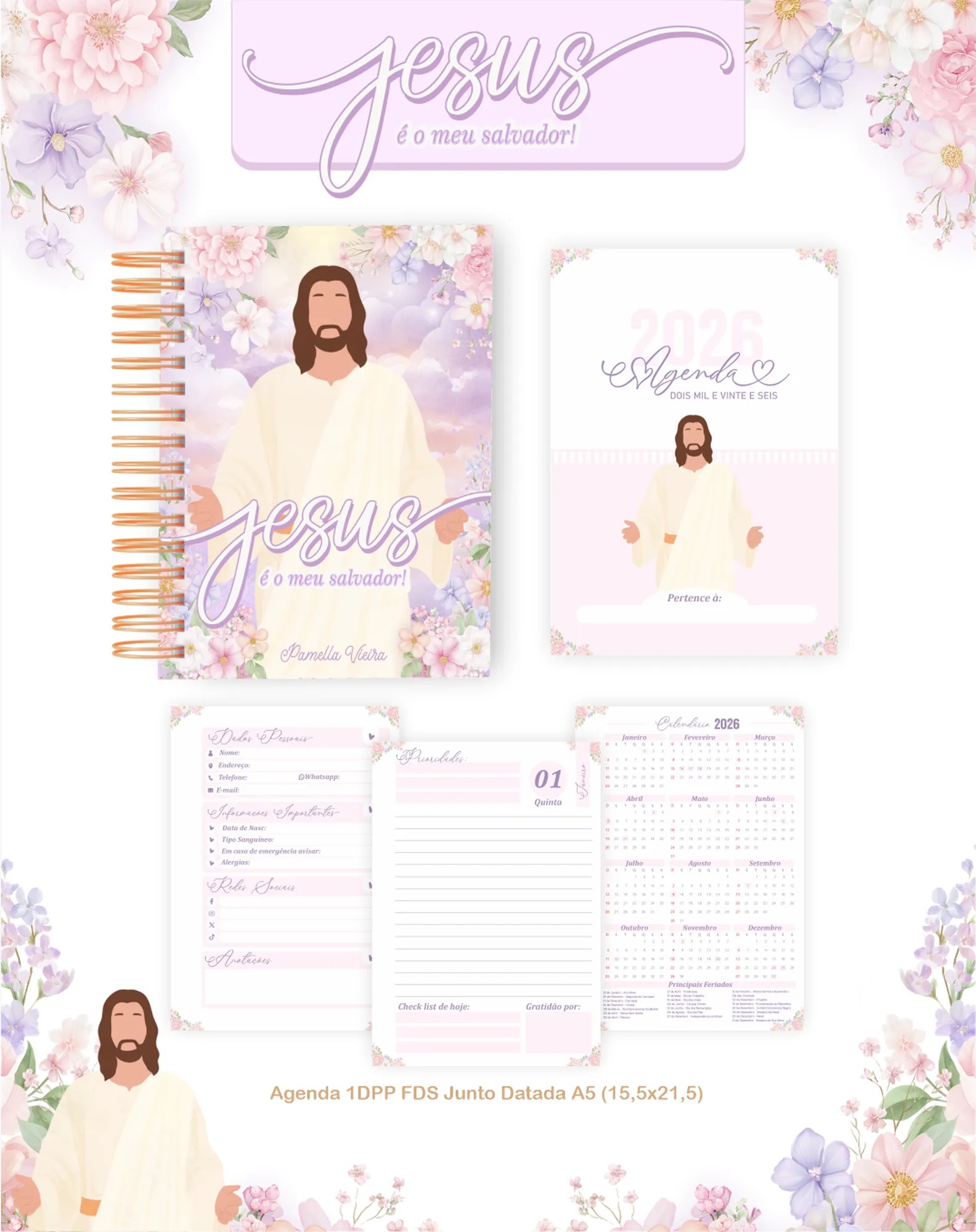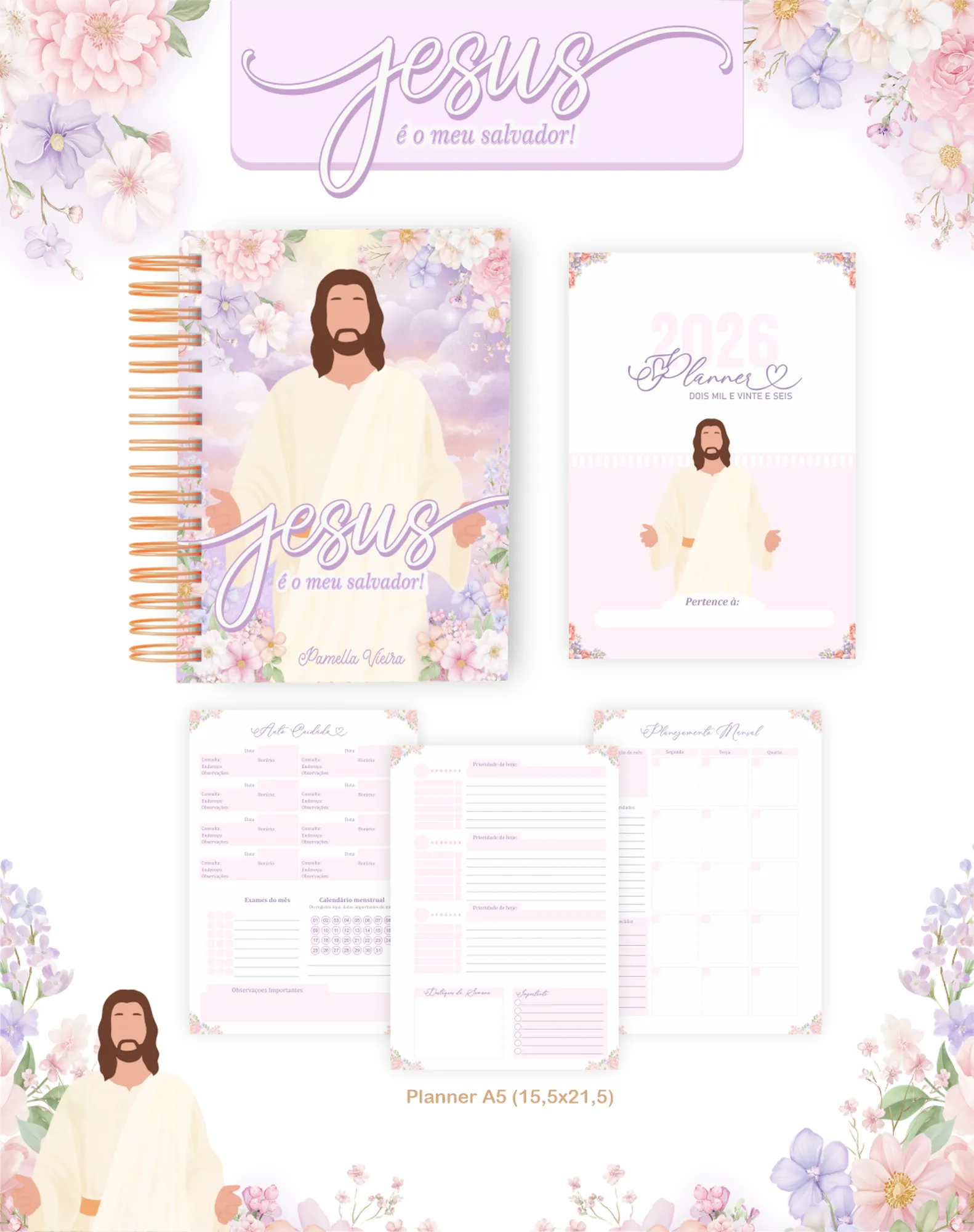 Prepare-se para um ano de organização e inspiração com este pacote digital completo! Perfeito para quem busca fé e produtividade, este projeto inclui tudo o que você precisa para criar agendas, planners e itens personalizados com o tema “Jesus e Meu Salvador”. Ideal para o ano de 2026 e com opções permanentes para uso contínuo.