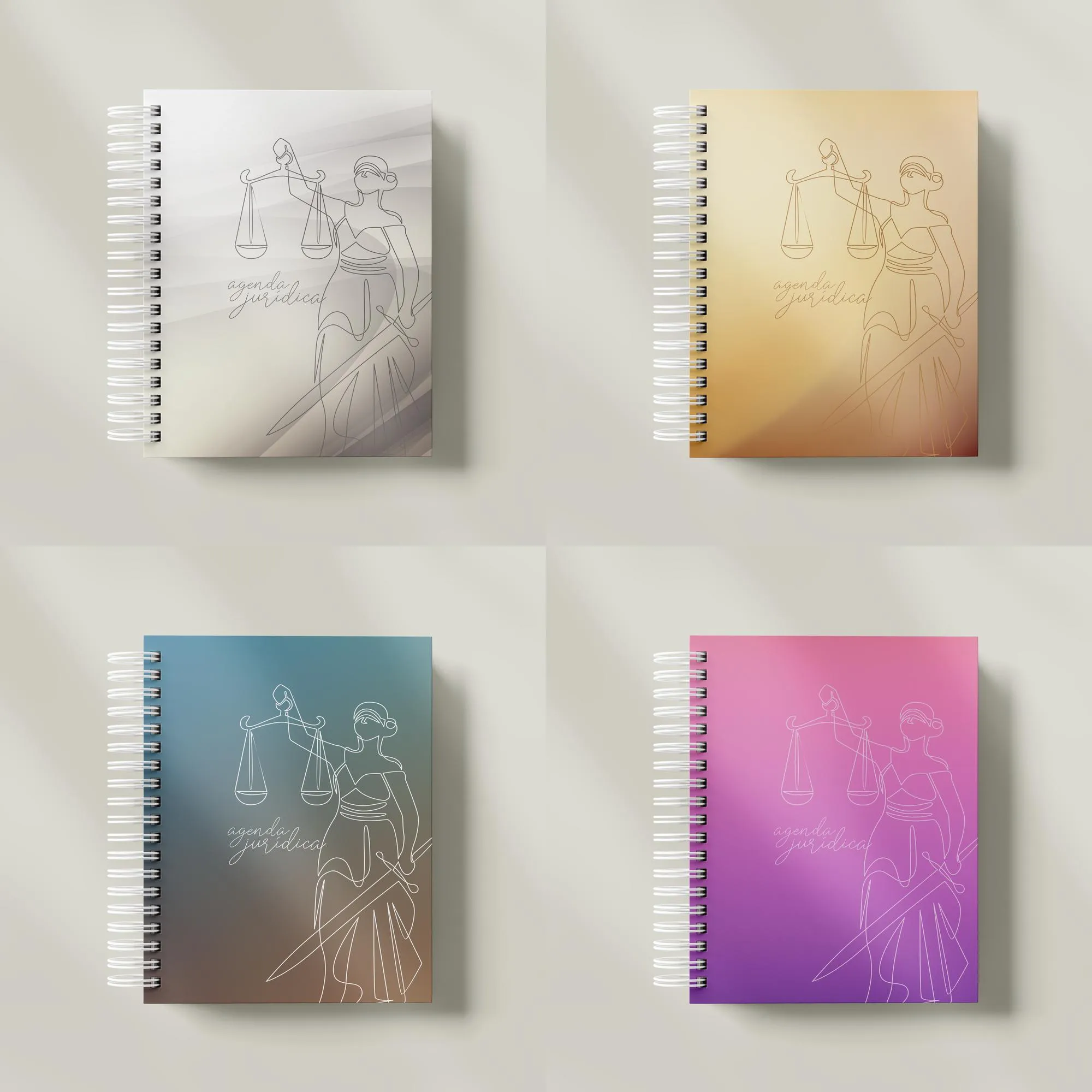 ✅CAPAS (pdf, png) ✅FOTOS (jpg) ✅MIOLOS (pdf, png) ➖ Agenda_juridica_A5_CINZA ➖ Agenda_juridica_A5_PADRÃO ➖ Agenda_juridica_A5_ROSA ✅MOCKUPS (png)