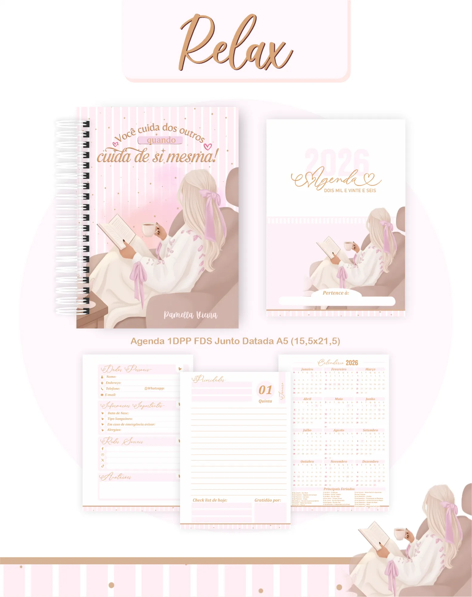 Prepare-se para um ano organizado e cheio de estilo com o **PROJETO AGENDA MENINA RELAX 01 – 2026 E PERMANENTE**! 💖 Este pacote digital completo foi cuidadosamente criado para você personalizar e oferecer produtos incríveis, combinando funcionalidade e um design encantador.