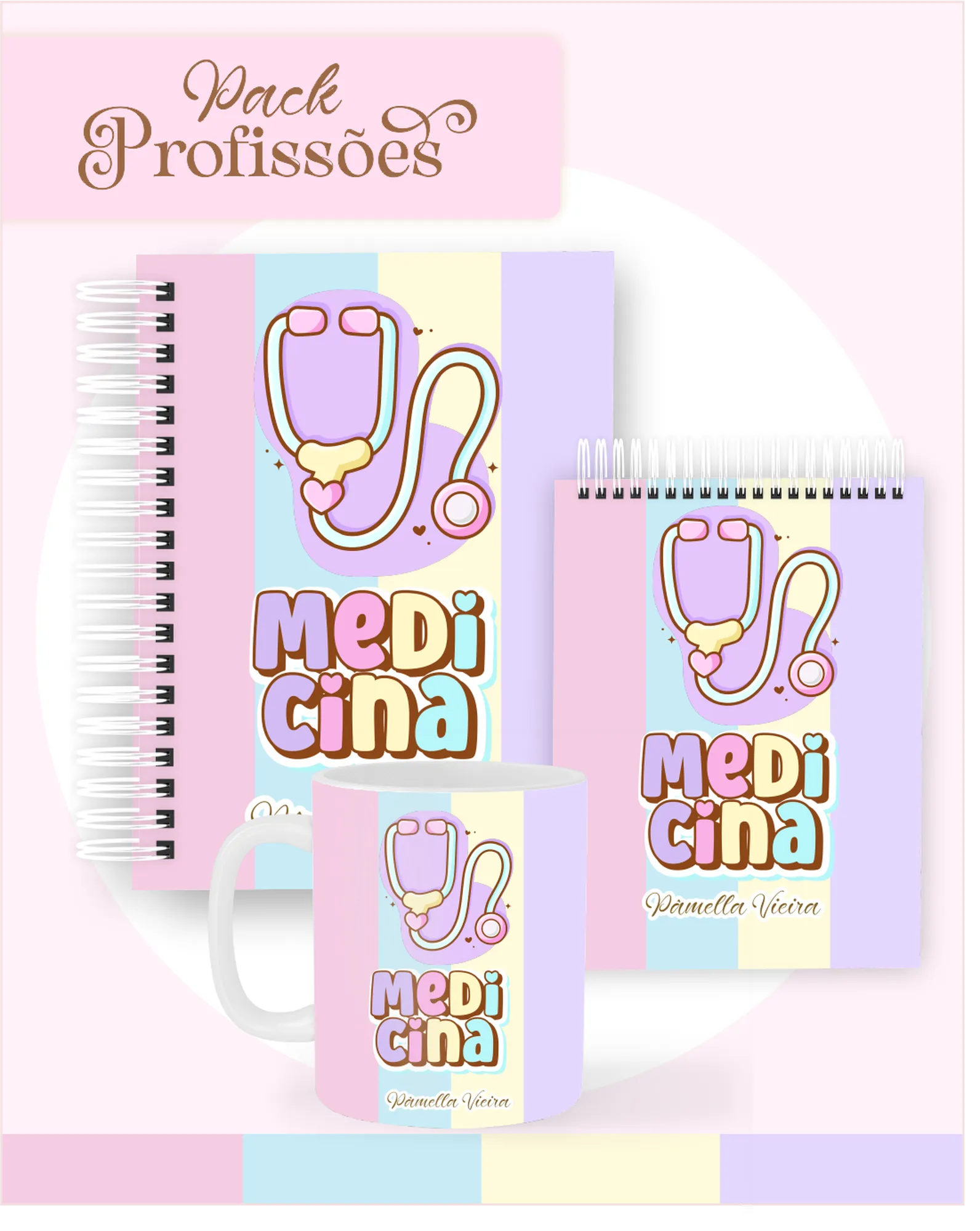 Este pacote digital completo é um tesouro para criadores e empreendedores, oferecendo uma vasta coleção de arquivos para personalizar produtos com o encantador tema “Profissões Candy”. Ideal para quem busca diversidade e alta qualidade, inclui tudo o que você precisa para criar agendas, bloquinhos, planejamentos, canecas, mockups e elementos gráficos, prontos para impressão e personalização!