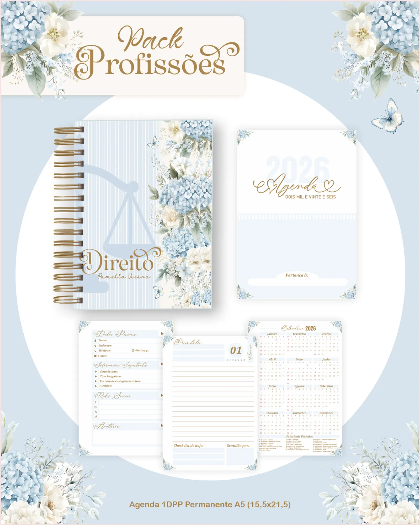 Prepare-se para organizar seu dia a dia com o **PROJETO AGENDA PROFISSÕES FLORAL AZUL 01 – 2026 E PERMANENTE**! Este pacote digital completo é perfeito para quem busca funcionalidade e beleza, com uma variedade de itens para personalizar sua rotina e produtos.