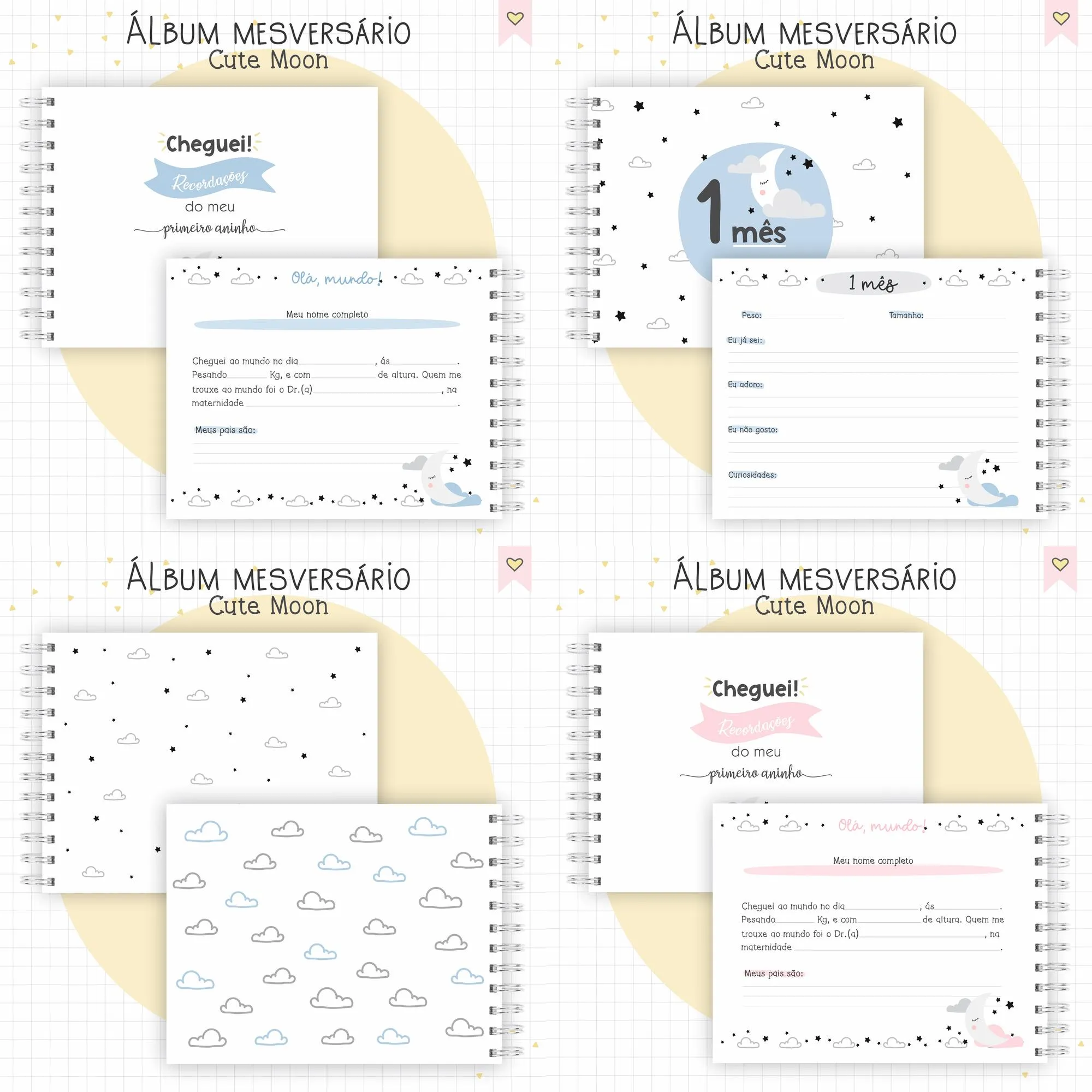 Um pacote completo e encantador para eternizar momentos especiais! ✨ Este combo digital inclui tudo o que você precisa para criar projetos personalizados com o tema Cute Moon, oferecendo opções em azul e rosa para atender a todos os gostos.