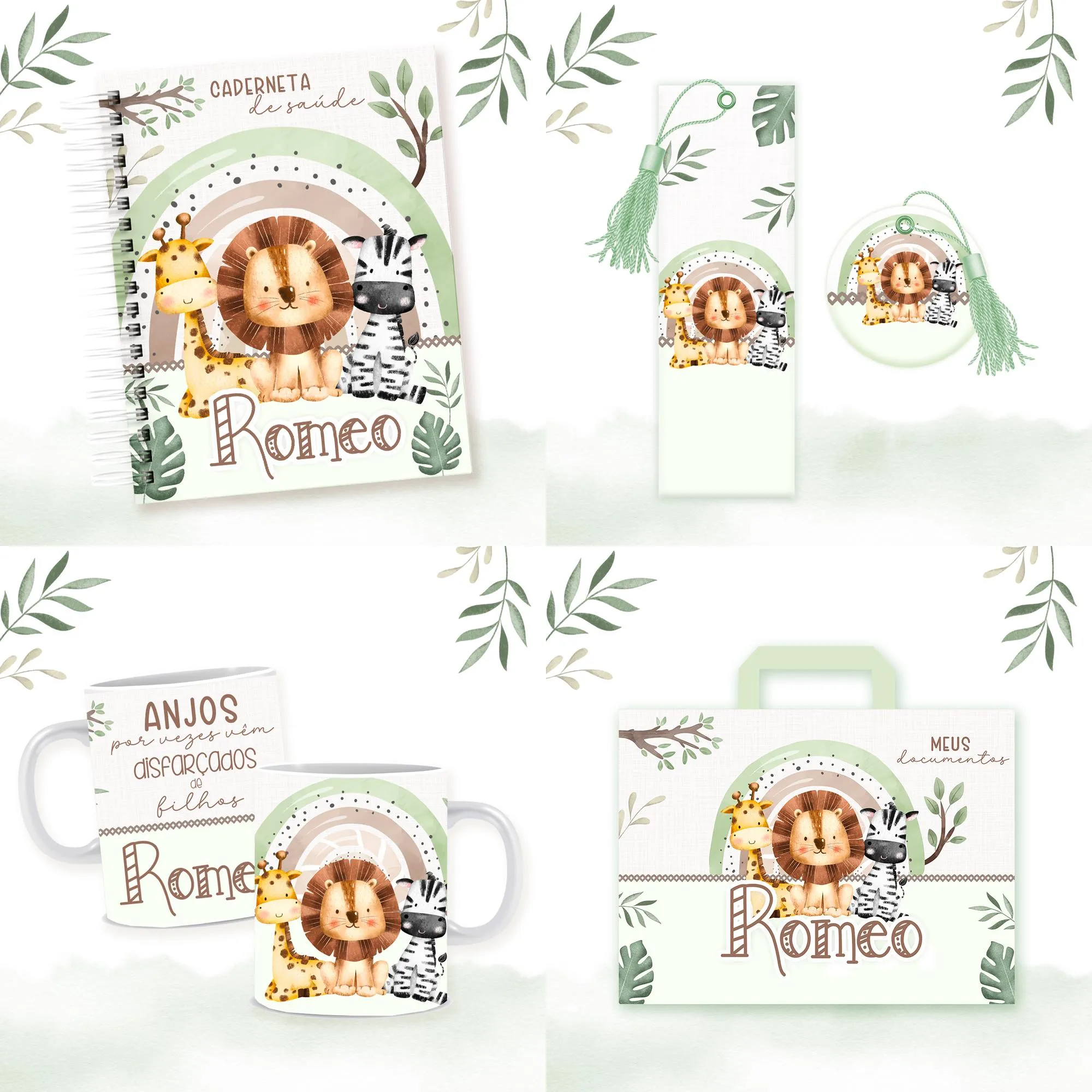 Um pacote completo e encantador para personalizar seus produtos com o tema Safari Rainbow! Perfeito para papelaria personalizada, brindes e muito mais.