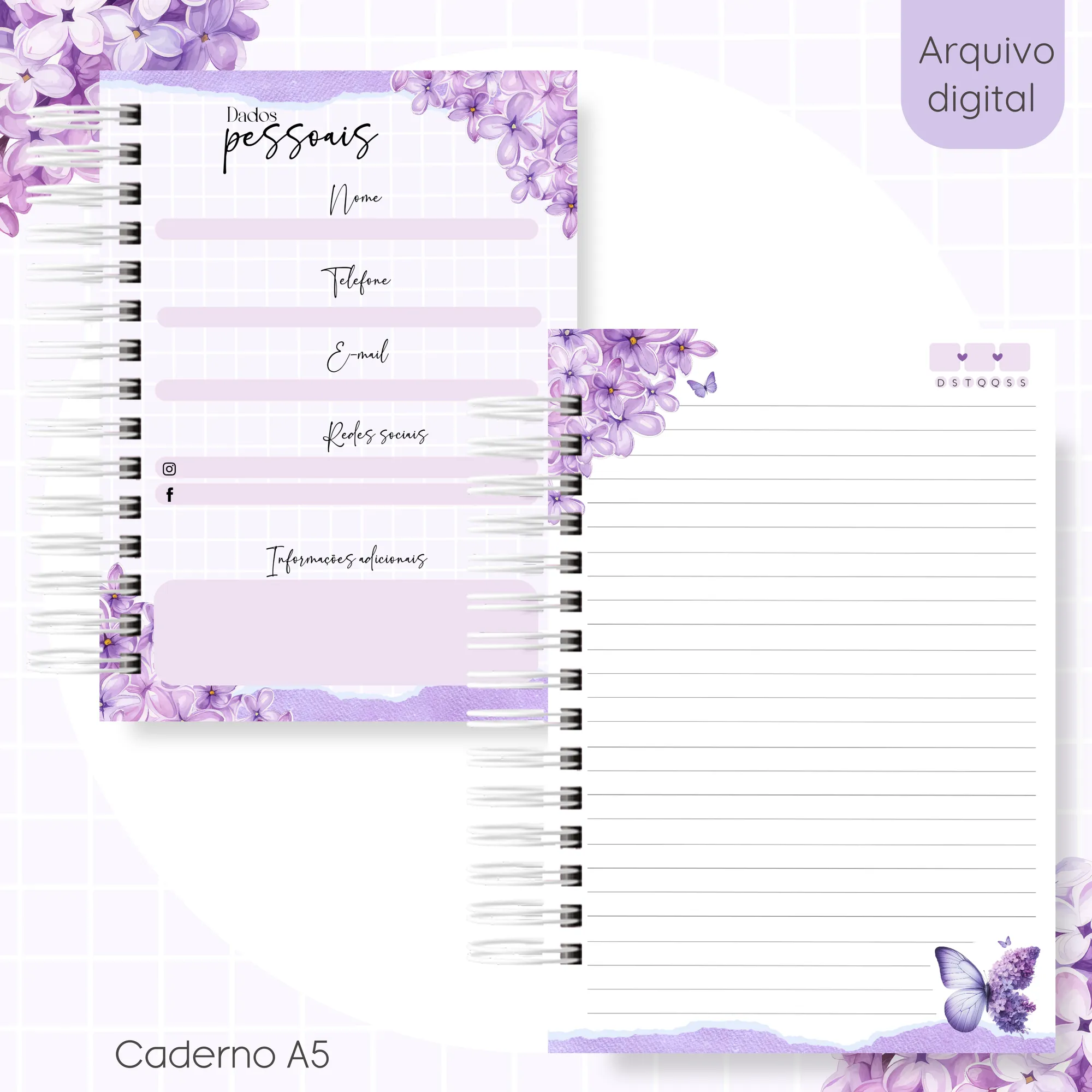 * 📂 **Capas:** 9 arquivos (PNG) – Diversas opções de capas e contra capas para personalizar seu caderno.